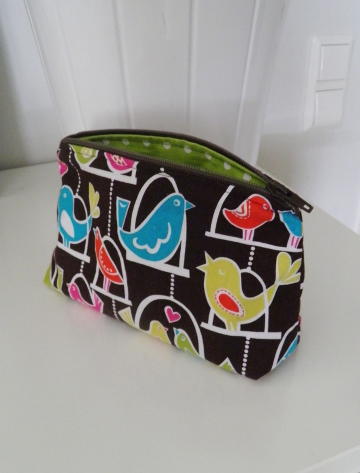 Tämä pussukka oli ensimmäinen ompelutyöni sitten peruskoulun käsityötuntien. Hieman vinksallaan olevasta vetoketjusta huolimatta pussukka on tilava ja toimiva, ja mielestäni oman kädenjäljen näkyminen on ainoastaan positiivinen asia.