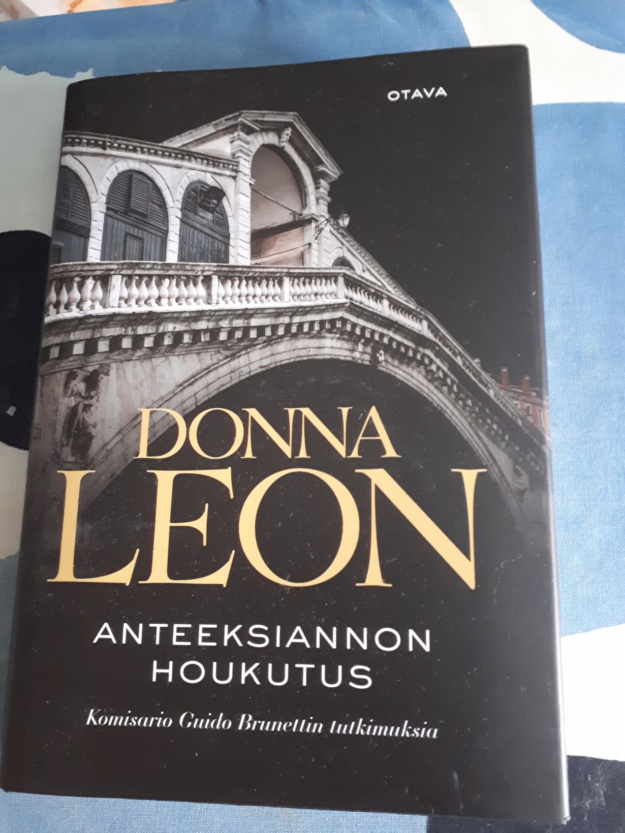Yöpöydälläni on Donna Leonin uusin. Edullinen kirjakerhon paketti yhdessä Eppu Nuotion uusimman kanssa, täydellistä. Komisario Guido Brunetti ei ole lainkaan kuin pohjoismaiset, lähes häiriintyneet virkaveljensä, vaan ihanan maanläheinen. Ja odotan vesi kielellä, mitä herkkuja Brunettien keittiössä taas loihditaan.