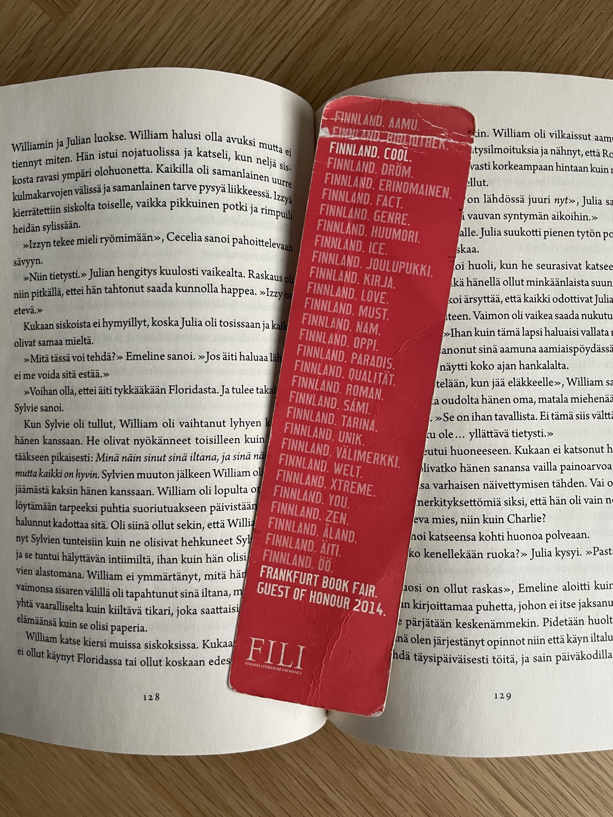 Lähetä kuvakisaan kuva kirjanmerkistäsi - voita Jokipiin Pellavan torkkupeitto ja tyyny Luottokirjanmerkki Krista 16.1.2026 klo 13:13 Suomi oli teemamaana Frankfurtin kirjamessuilla 2014.