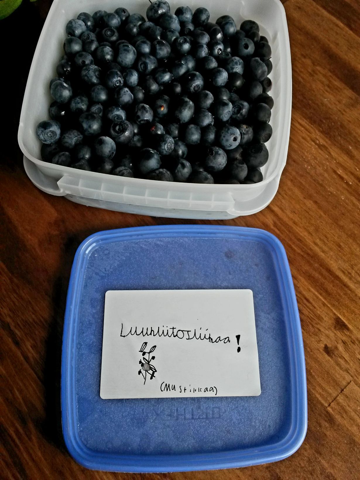 Mursin nilkkani pahoin ratsastusonnettomuudessa. Rakas kummipoikani keksi poimia supermarjoja, eli mustikoita luunliitosliimaksi, avuksi nilkkani luutumiseen. Kaunis ele nuorelta miehenalulta.