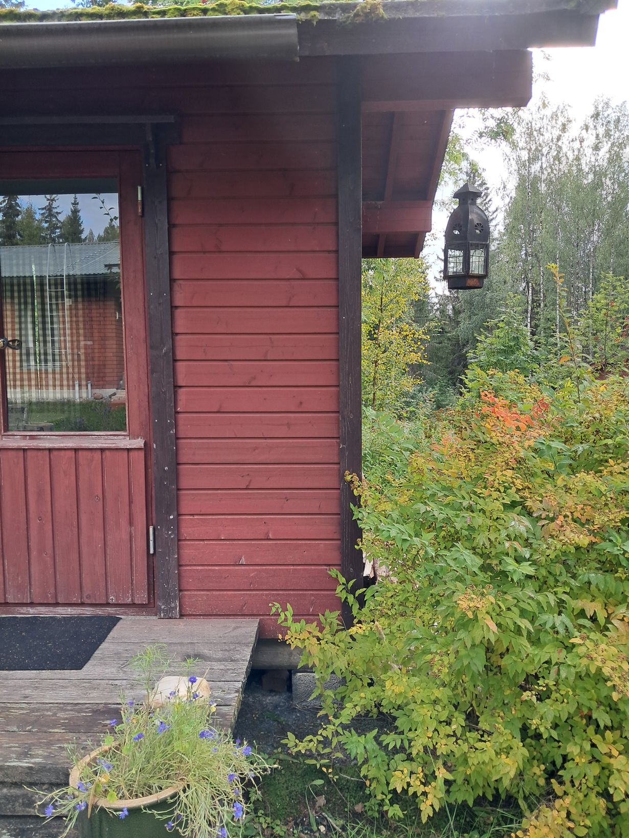 Lähetä kuvakisaan kuva pihalyhdystäsi - voita Lapuan Kankureiden villahuopa Lyhty kesäkeittiössä Mummeli 29.8.2025 klo 16:35 Kesäkeittiön räystään alla lyhty johon mieheni laittaa patterikynttilän, en itse yltä. Kaunis jo vanha lyhty.