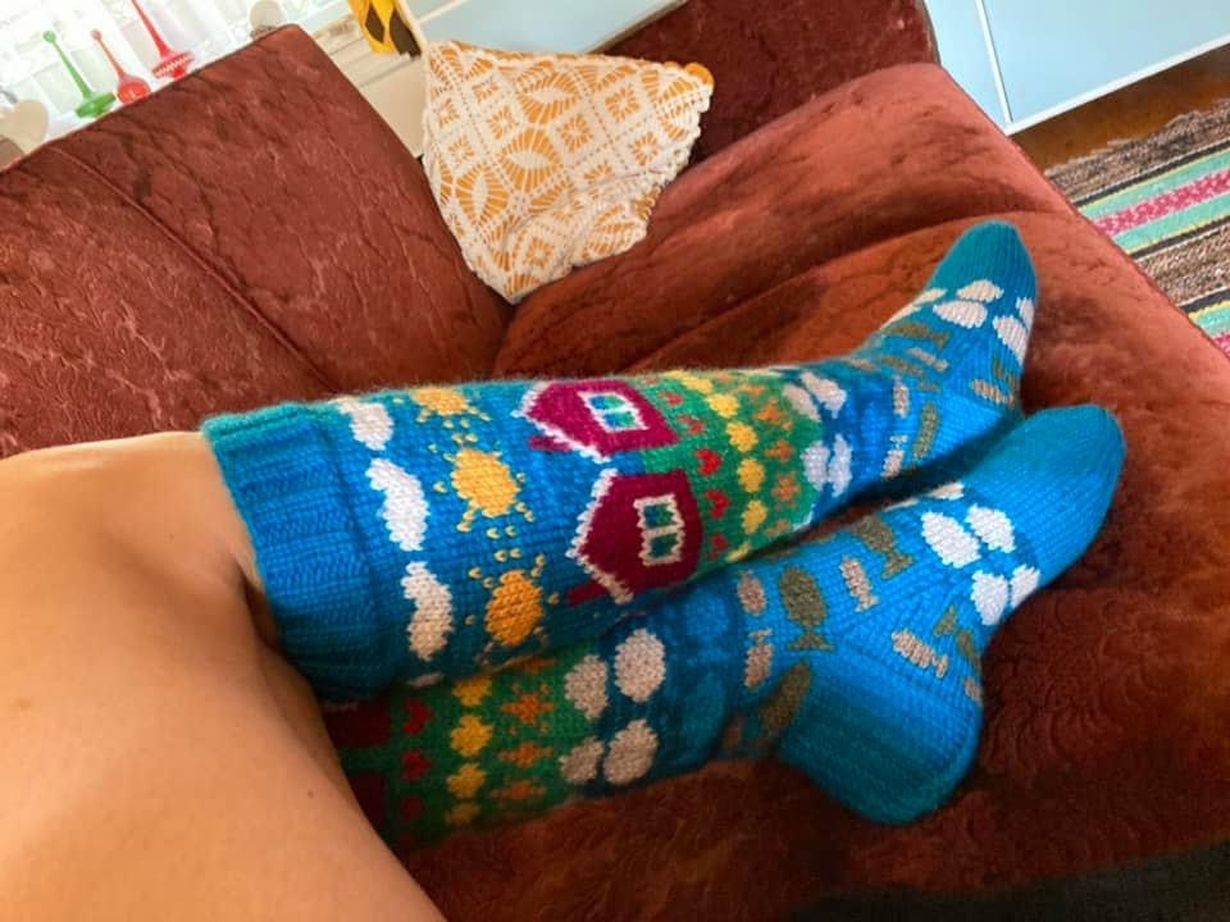 Lähetä kuvakisaan kuva villasukistasi - voita Familonin peitto ja tyyny! Maalaiselämää villasukat Tiikerinna 6.8.2022 klo 11:20