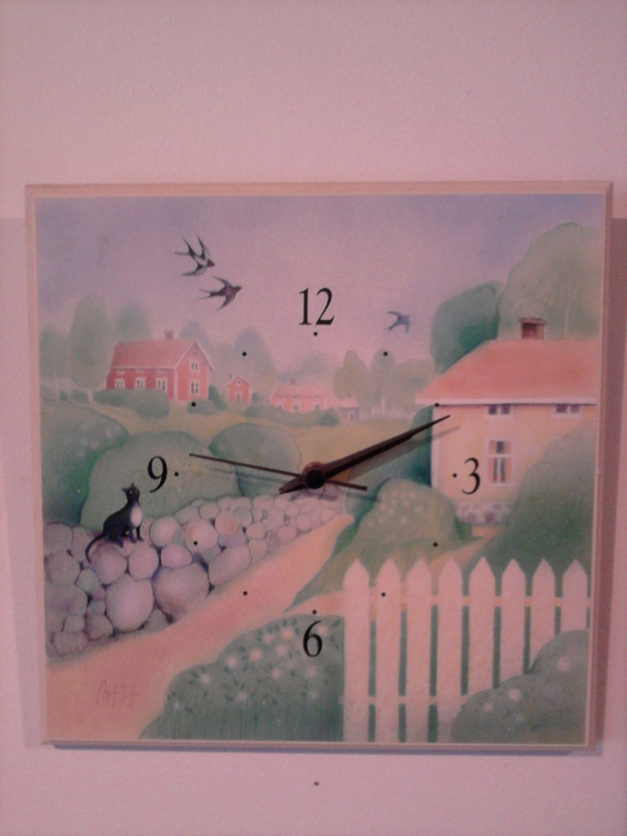Sain idyllisen maalaiskellon sisareltani syntymäpäivälahjaksi. Oikeampi nimitys sille lienee keittiökello. Vaikka aika tikittää eteenpäin, kellossani on aina yhtä ihana kesä!