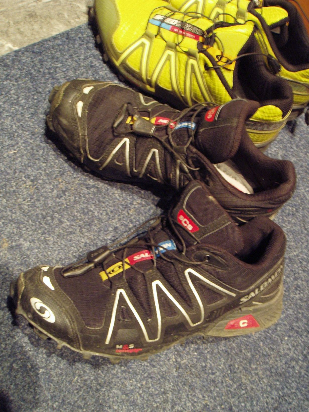 Näillä mustilla Salomoneilla olen juossut kolmen kesän hirvenjuoksukisat ja kellanvihreät taustalla ovat jo toista kesää sisäänajovaiheessa. Ihan parhaita tossuja vaihteleviin maastoihin!