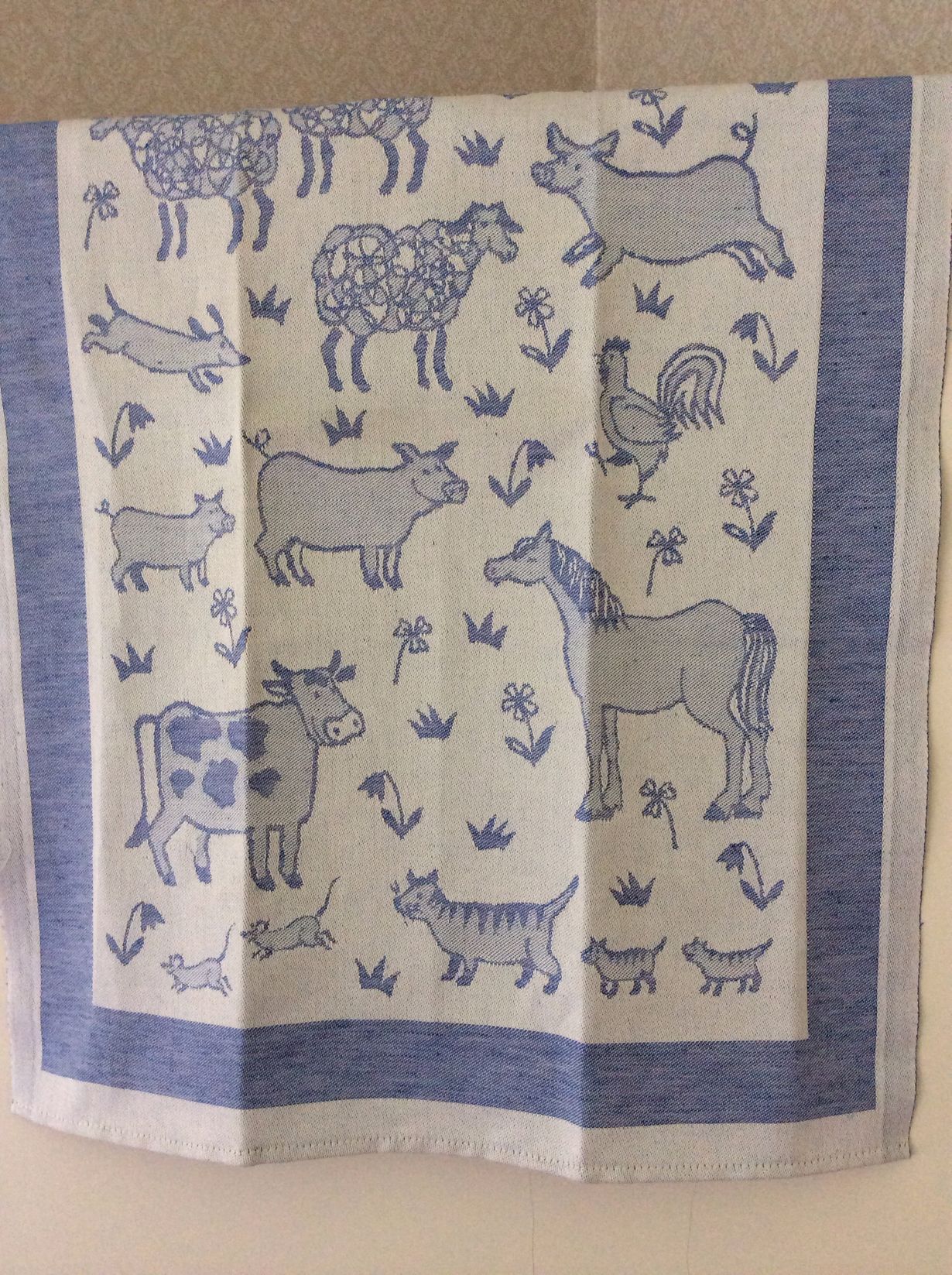 Pyyhe on erityisen rakas, koska siinä käyskentelevät kaikki ne eläimet, joita oli lapsuuskodissani, pienellä maatilalla. Nyt maatilaa ei enää ole, mutta talo pihapiireineen on suvun kesätalona.