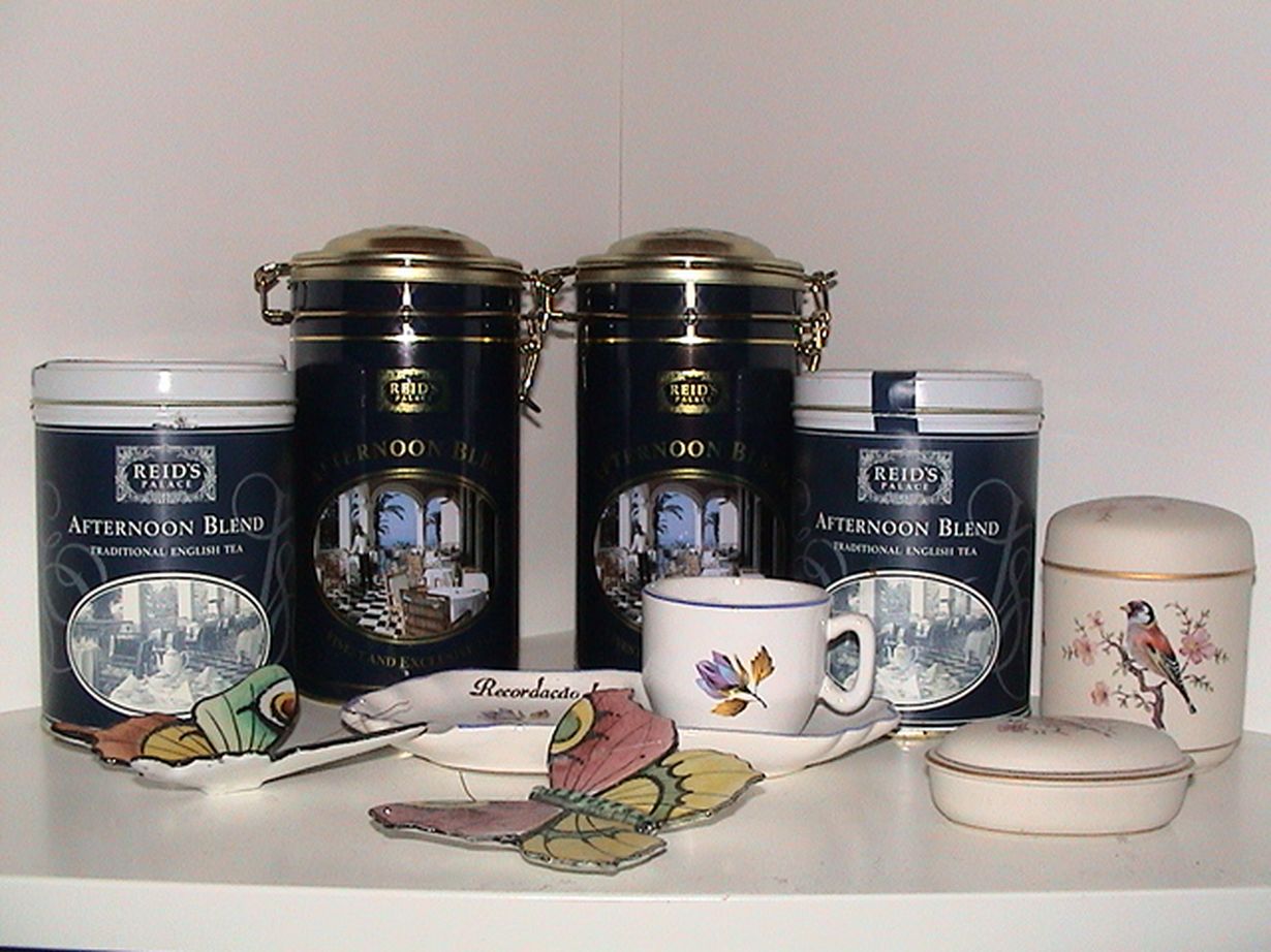 Madeiralla käydessäni olen usein käynyt Reid´s Palacessa iltapäiväteellä ja sieltä olen ostanut myös mukaan heidän omaa erinomaista teetä, joiden peltipurkit olen säilyttänyt muistona.