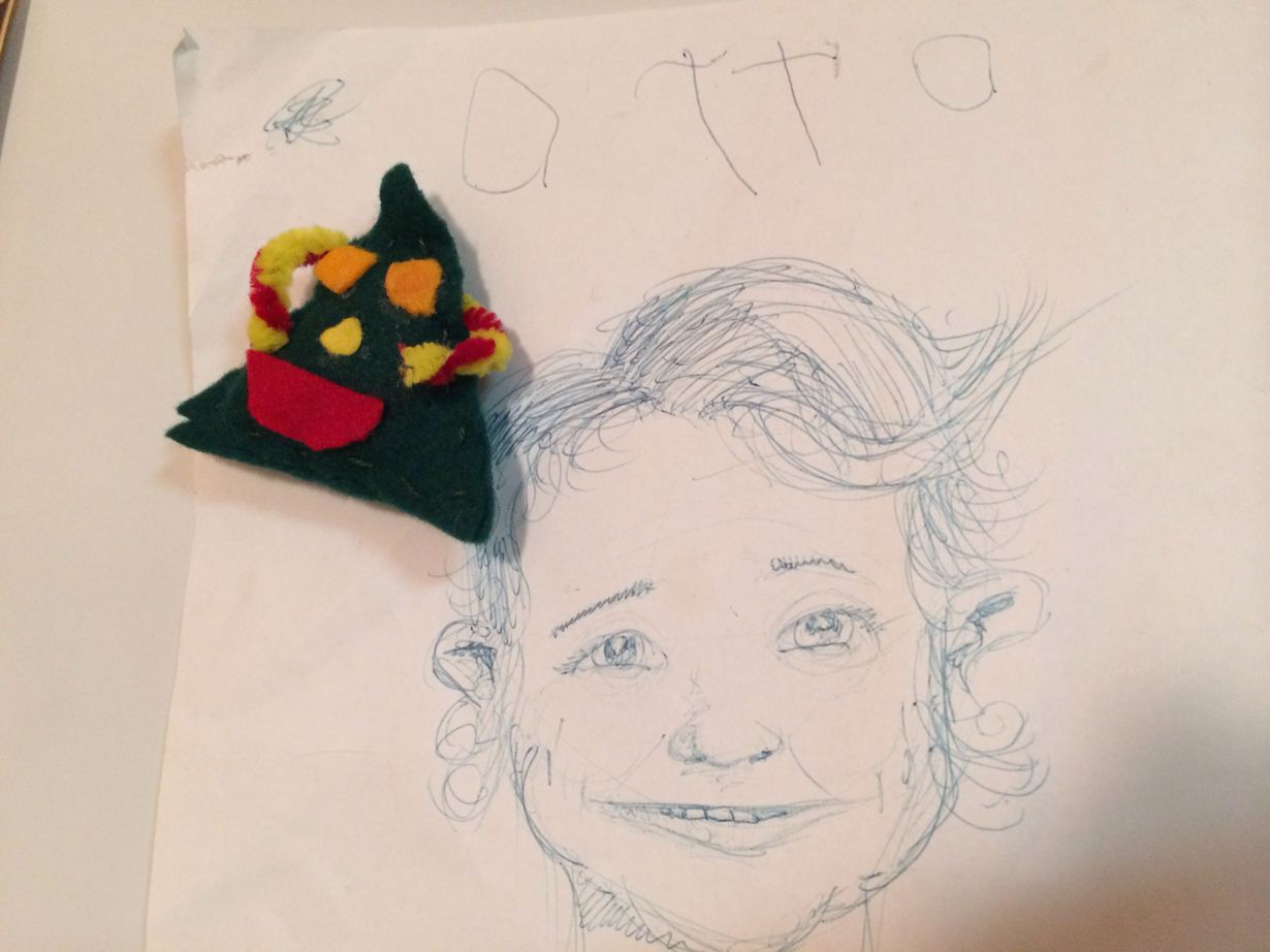 Alakoululaisen itse tekemä magneetti ja ystävän piirtämä kuva magneetin tekijästä sopivat yhteen.