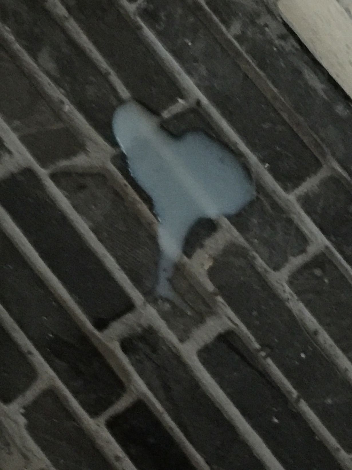 Maitopurkin sisältöä oli valunut maahan,poltettavasta ,takkaan menevästä purkista.Kaatunut sisältö oli sydämen muotoinen.❤️