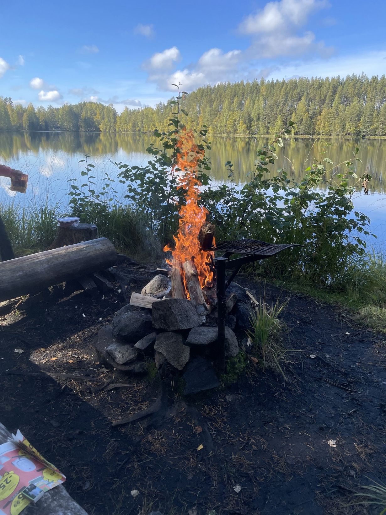 Oltiin viime vuonna paistaa makkaraa tulilla