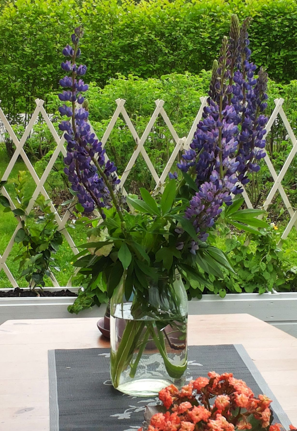 Lähetä kuvakisaan kuva maljakostasi - voita Iittalan Tundra-astioita! Maljakko terassilla Heinäkuun tyttö 4.1.2023 klo 22:07 Lupiinit ovat kauniita isossa Ilves- lasipurkissa, jota kesällä pidän maljakkona terassilla