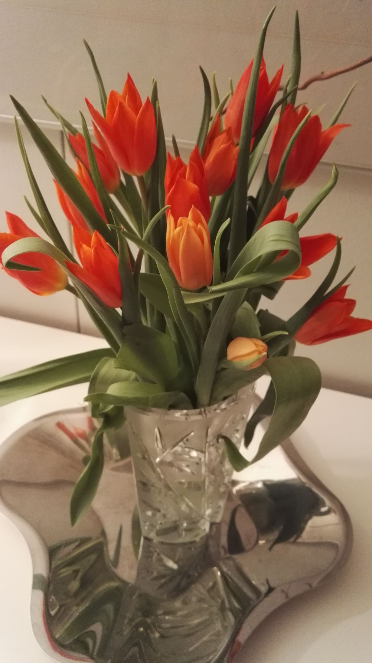 Kuvaa kukkamaljakkosi - voit voittaa aktiivisuusrannekkeen! Maljakko Kaispe 9.4.2017 klo 23:05 Mieheni ostama kaunis maljakko ja oranssit tulppaanit.