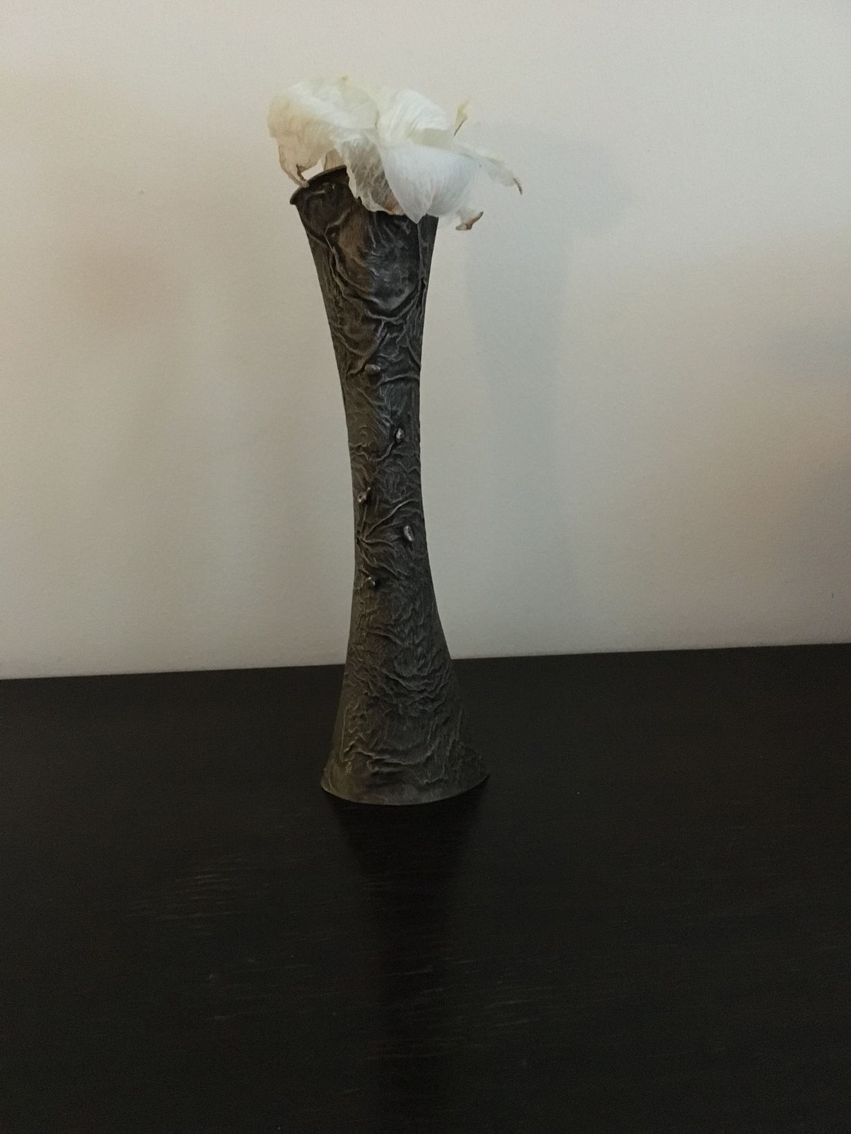 Saimme tämän hopeamaljakon häälahjaksi v. 1964.