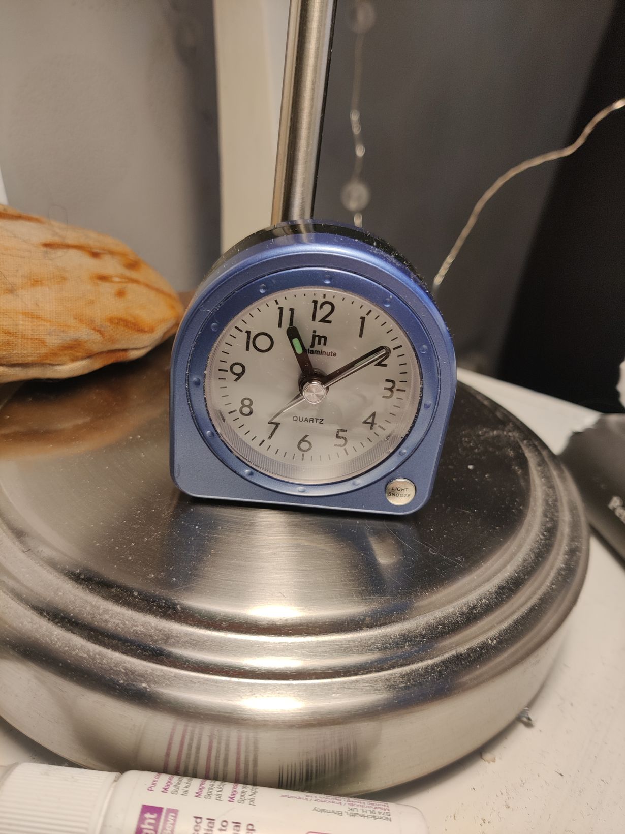 Rakas mammani nukkui pois vuosi sitten tammikuussa. Mamma oli tarkka ajasta ja siitä, että kello oli näkyvillä aina. Minulla ei ole ollut herätyskelloa vuosiin ja sain tämän. Nyt kello tikittää rauhalliseen tahtiinsa yöpöydälläni, antaa ajan ja herättää, tuo mammani lähelle.