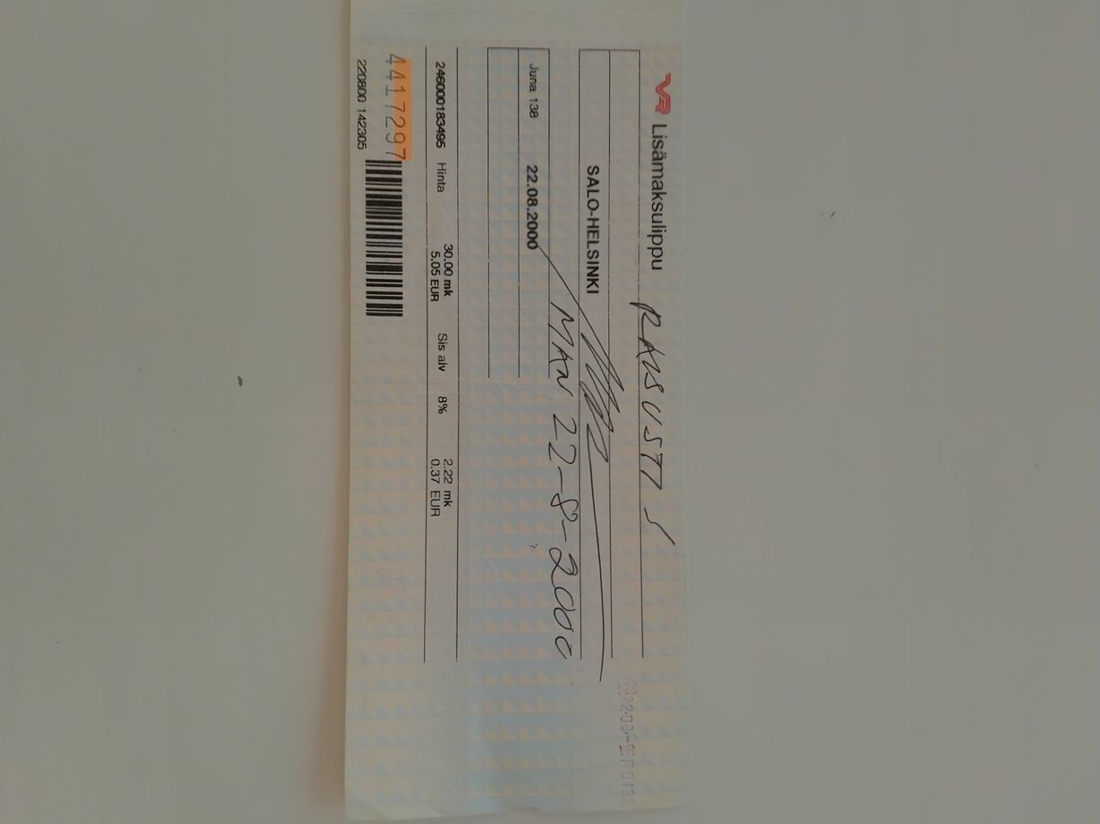 Helsingin juhlaviikoilla keskustelun lomassa tuli pyydettyä nimmari Mauri Antero Nummiselta muistoksi junalippuun mielenkiintoista keskustelutuokiosta.