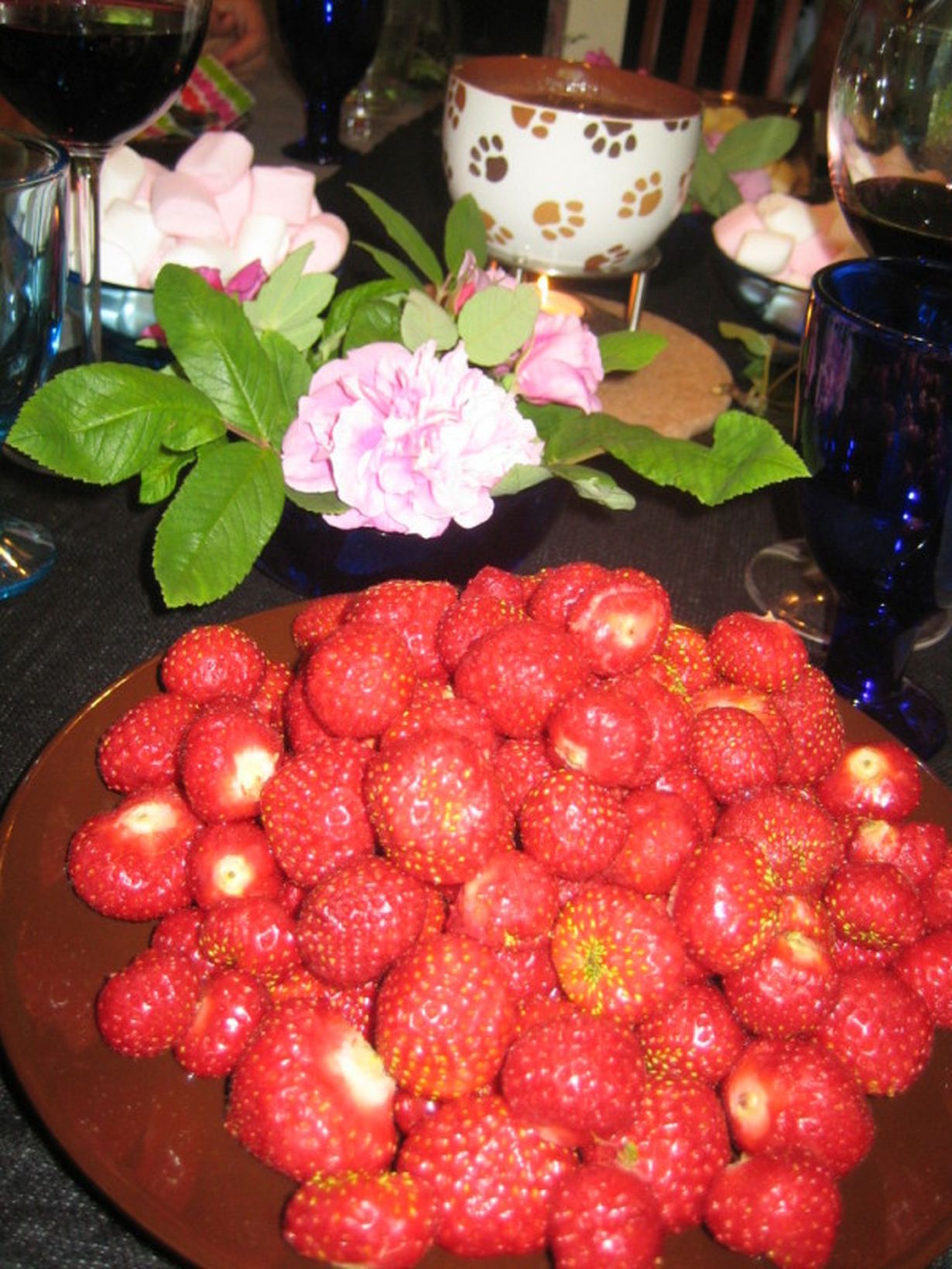 Mansikat maistuvat makoisilta dipattuna kuumaan suklaafondueen. Mansikoiden kaverina vaahtokarkkeja ja dippailijan kaverina hyviä ystäviä!