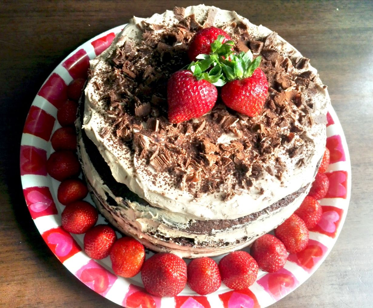 Esikoisen syntymäpäiviä juhlitaan mansikkakauden ollessa parhaimmillaan. Viime kesänä kakku leivottiin Valion suklaakakku-reseptillä ja jätettiin nakuksi. Lopputulos kruunattiin mansikoilla.