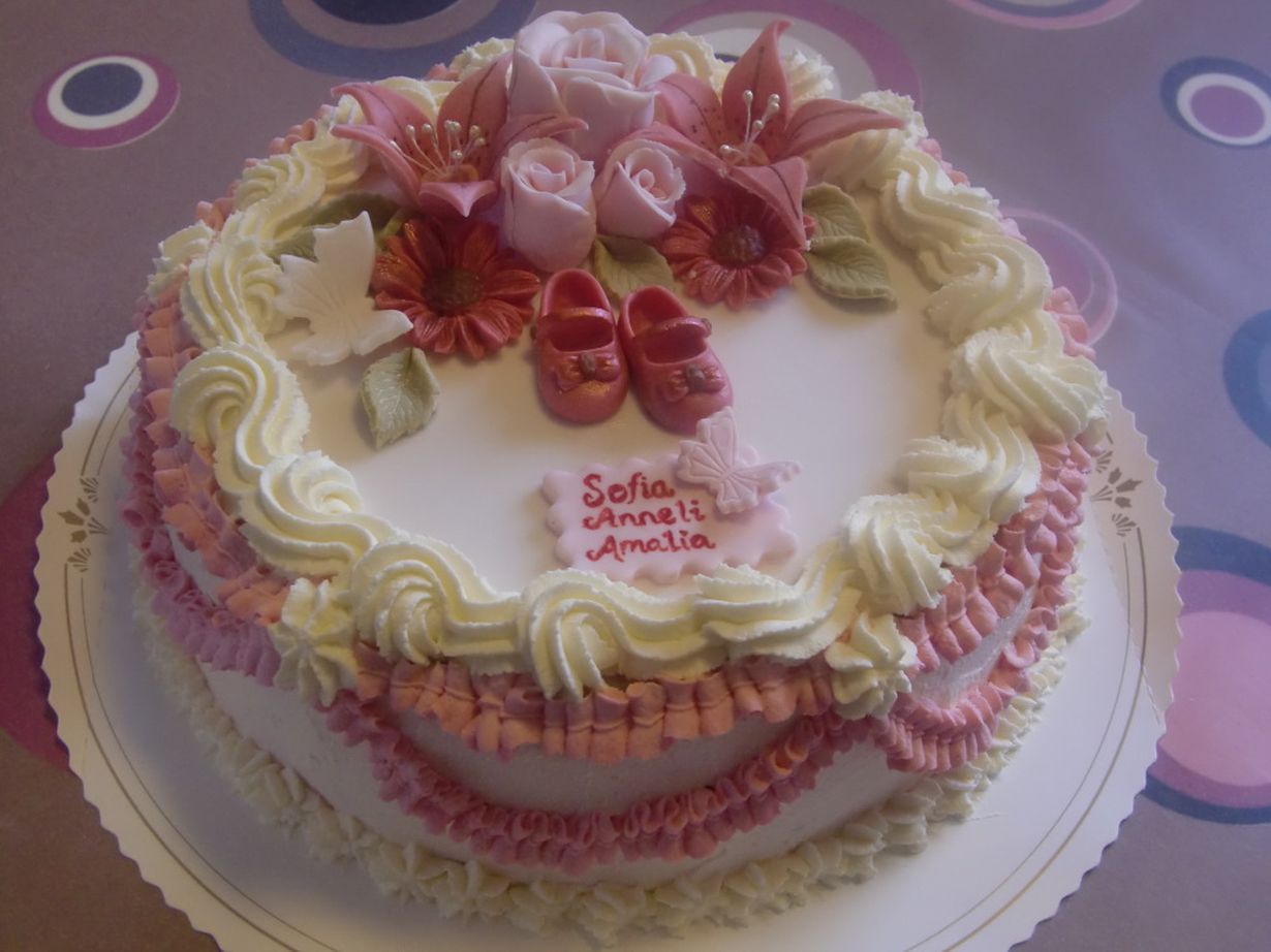 Tämä ihana arki: kakku Mansikkakakku 10.4.2012 klo 18:46 Minua pyydettiin tekemään kastejuhlaan kakku ja välissä oli mansikkainen täyte sekä valkosuklaamousse.