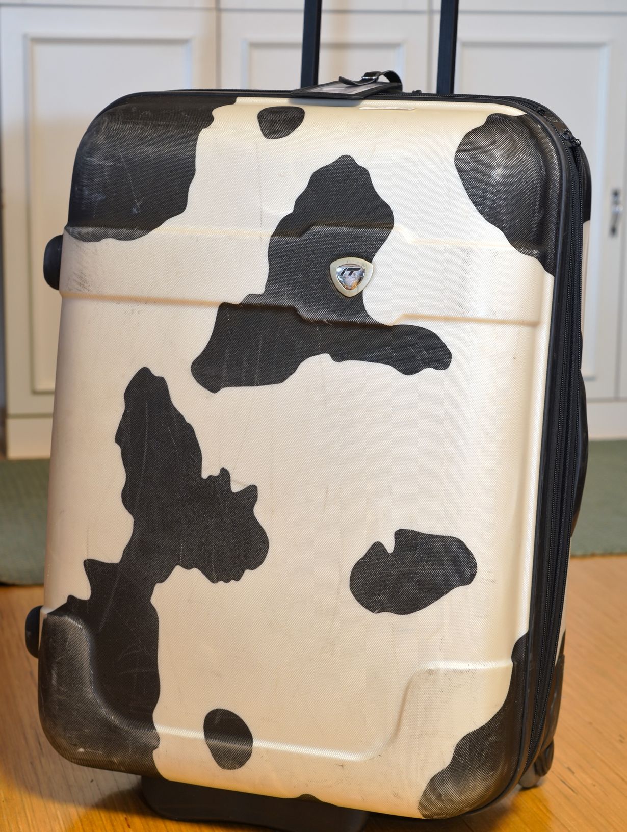 Lähetä kuvakisaan kuva matkalaukustasi - voita Iittalan Tundra-astioita! Matkalaukku T.E 16.2.2023 klo 12:25 Lehmännahkakuvio erottuu hihnalta.