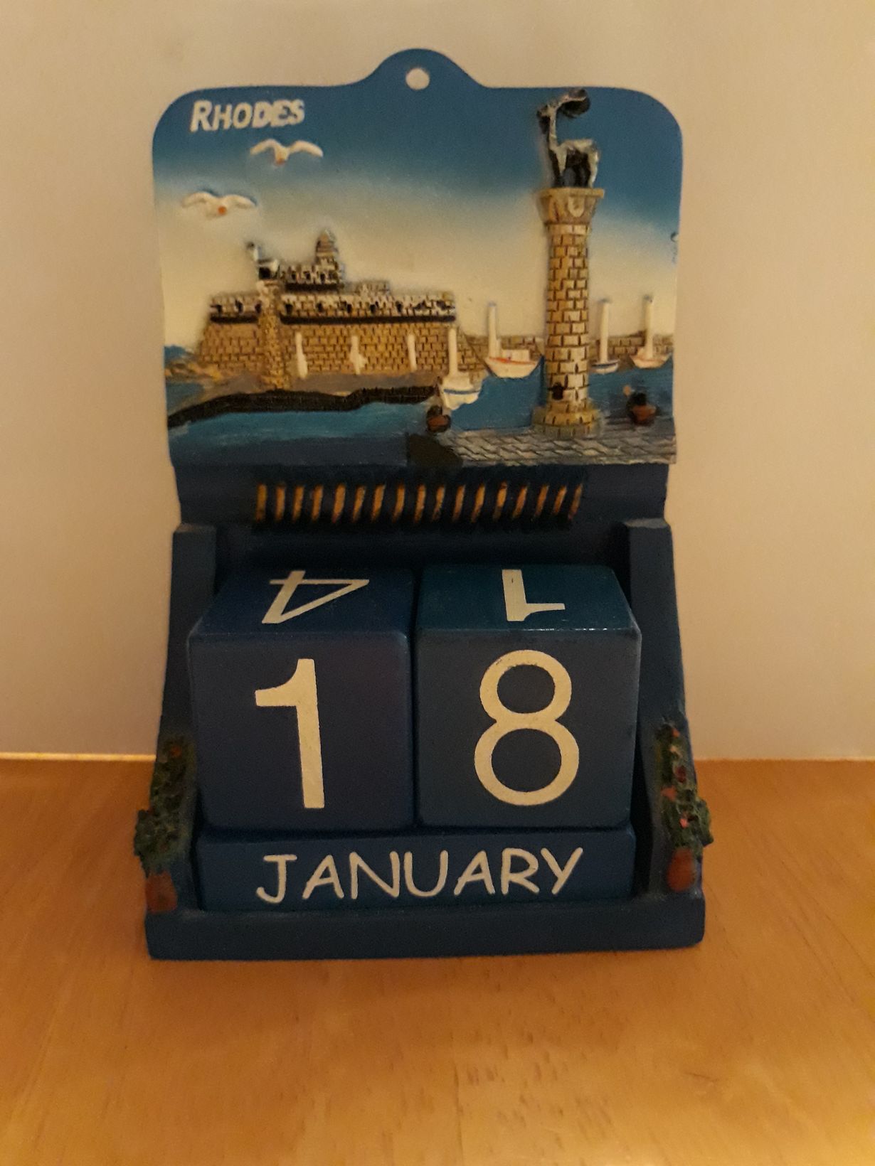 Kalenteri-matkamuisto ostettu ensimmäiseltä ulkomaanmatkalta v. 2008.