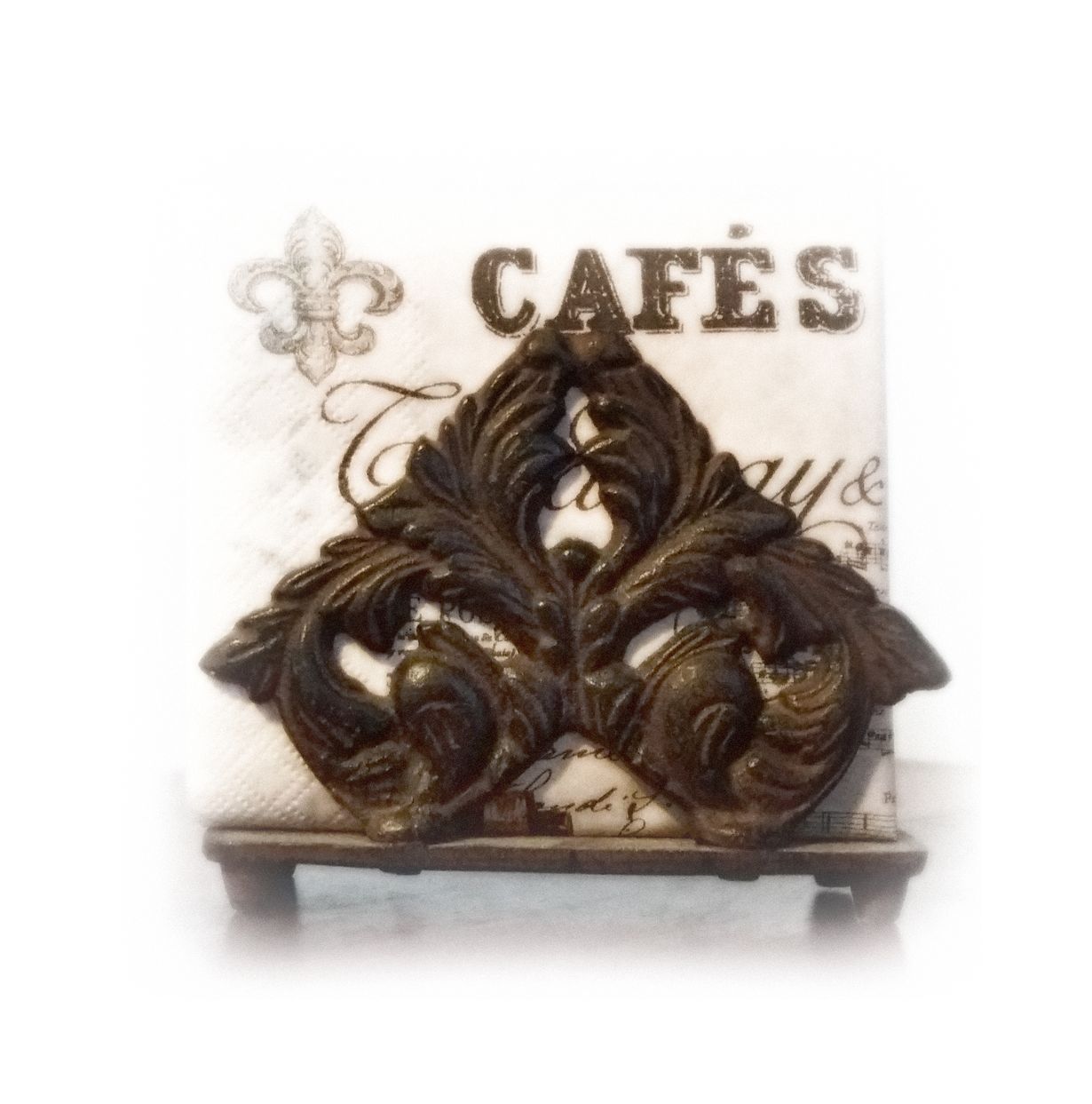Valurautainen servettiteline on vajaan 10 vuoden takainen löytö belgialaiselta kirpputorilta - kesänä, jolloin vietin ensimmäistä suvea tulevan mieheni kanssa. Rakastan tavaroita, joilla on tarina - nyt teline jatkaa tarinaansa pohjoisessa ulottuvuudessamme!