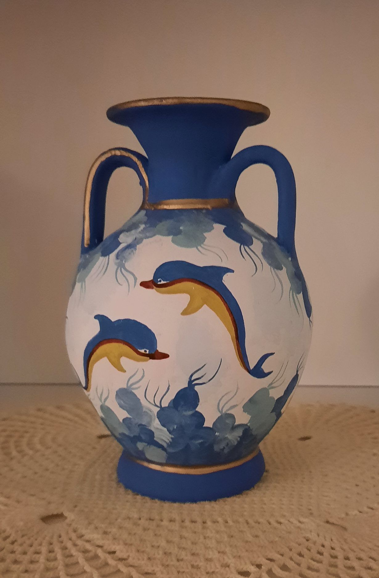 Olimme mieheni kanssa Greetalla 25 vuotta sitten hänen merkkipäivänään. Kävelyretkellä osui ruukuntekijä kohdallellemme ja ihastuin kuvassa olevaan ruukkuun ikiajoiksi. Ihailen edelleen tuota esinettä, jossa on kreikan henki ja meren raikkaus.