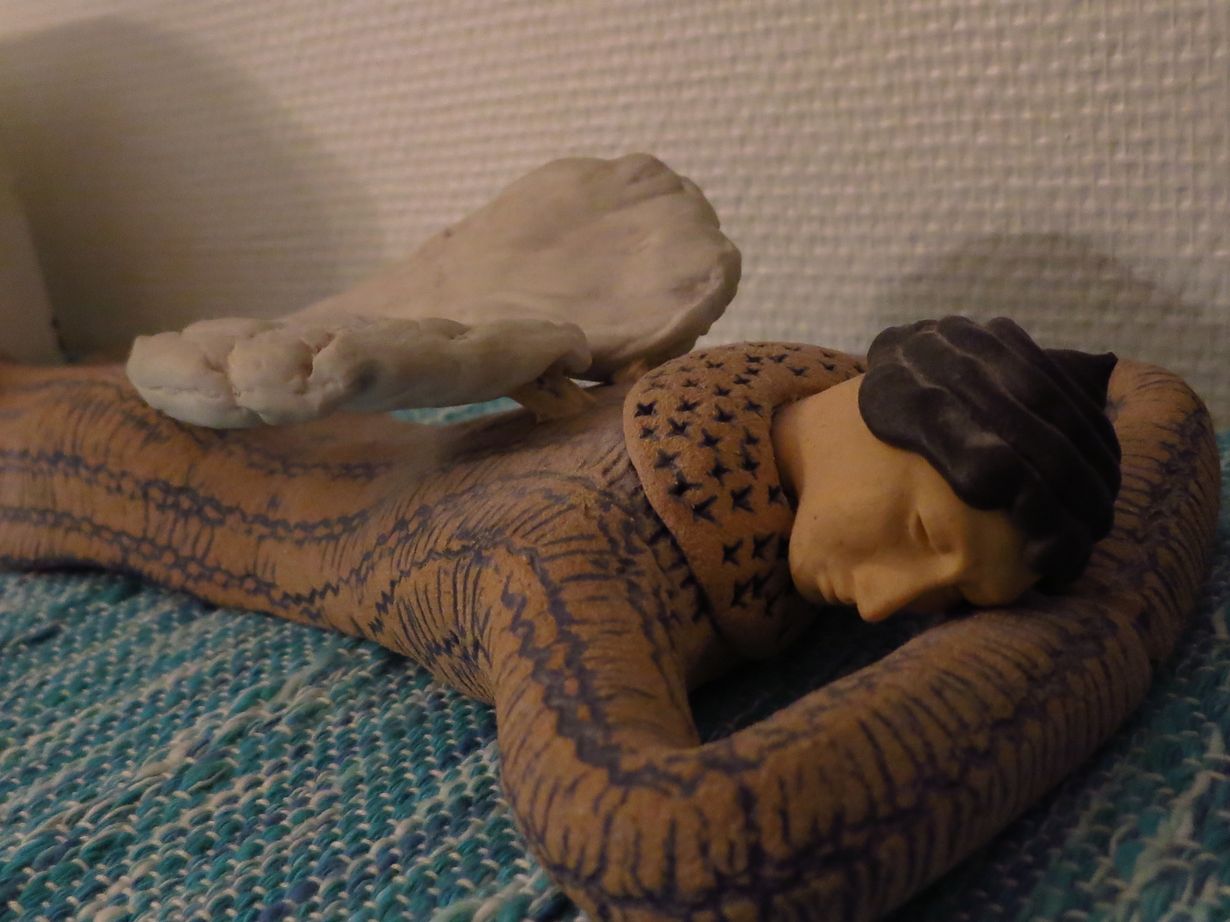 Olin matkalla Kreetan Haniassa stressaavan työjakson päätteeksi. Päätin ostaa keraamisen, melko kalliin lepäävän enkelin muistuttamaan levollisuuden tarpeellisuudesta jatkossa.