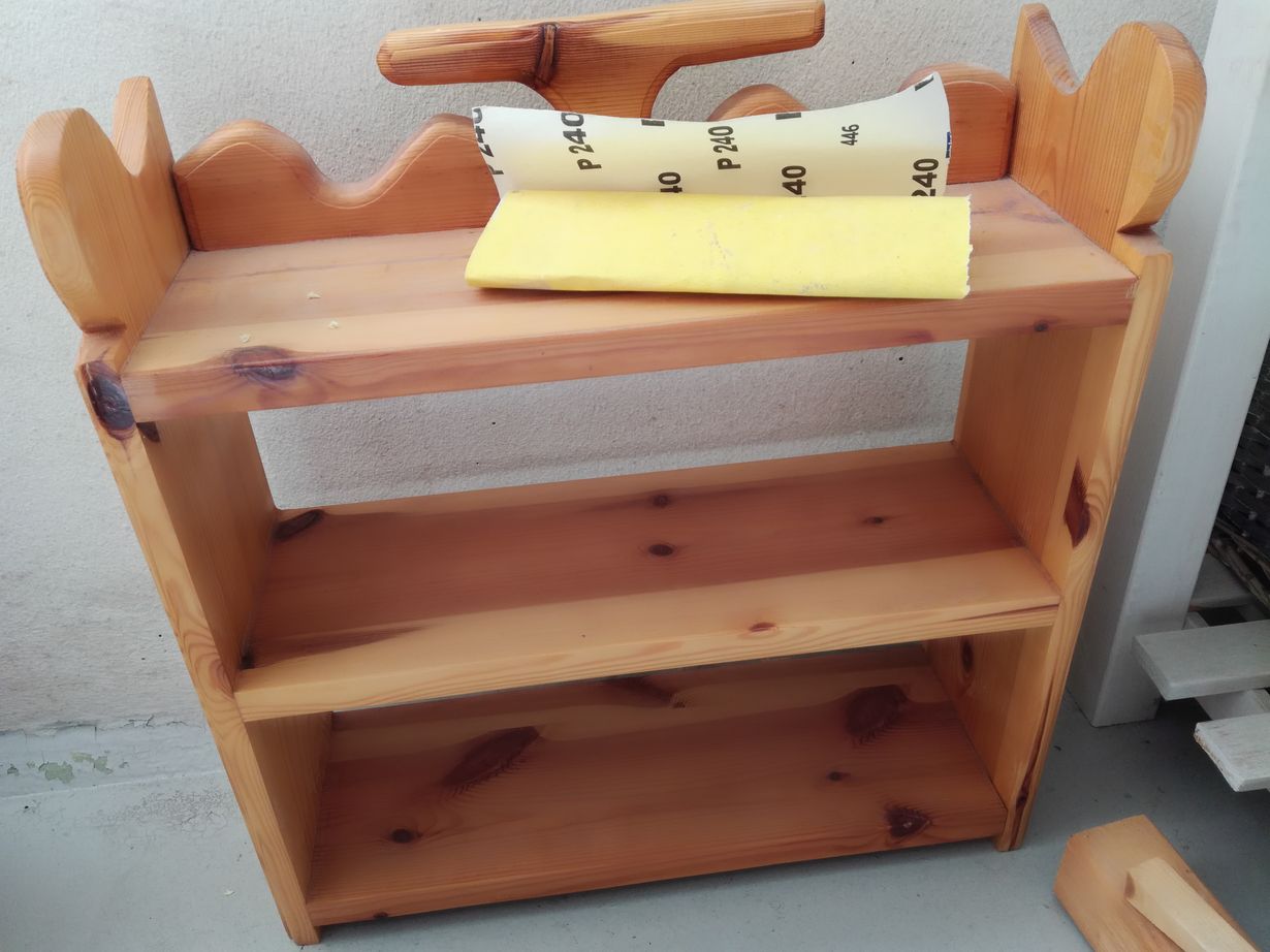 Koulun puukässyillä tehty maustehylly löytyi juuri sopivasti varastosta. Nyt odottaa hiontaa ja maalausta valkoiseksi. Päivitetään kaunis, pitkäkestoinen, hartaasti tehty käsityö vaaleaan sävyyn.