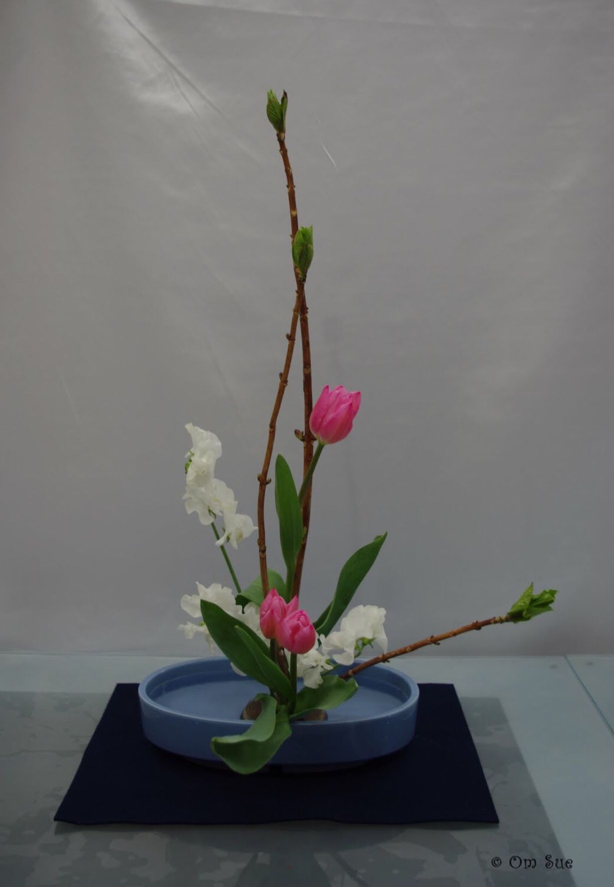 Asuimme pari vuotta perheeni kanssan Japanissa. Osakassa tuli käytyä Ikebanakurssilla (japanilainen kukkien ja oksien asettelun taide). Aivan fantastinen kokemus, ihminen ja luonto kohtaavat tarkan meditoivan kukkaasetelman kautta vaikkapa olimme keskellä suurkaupungin vilinää.