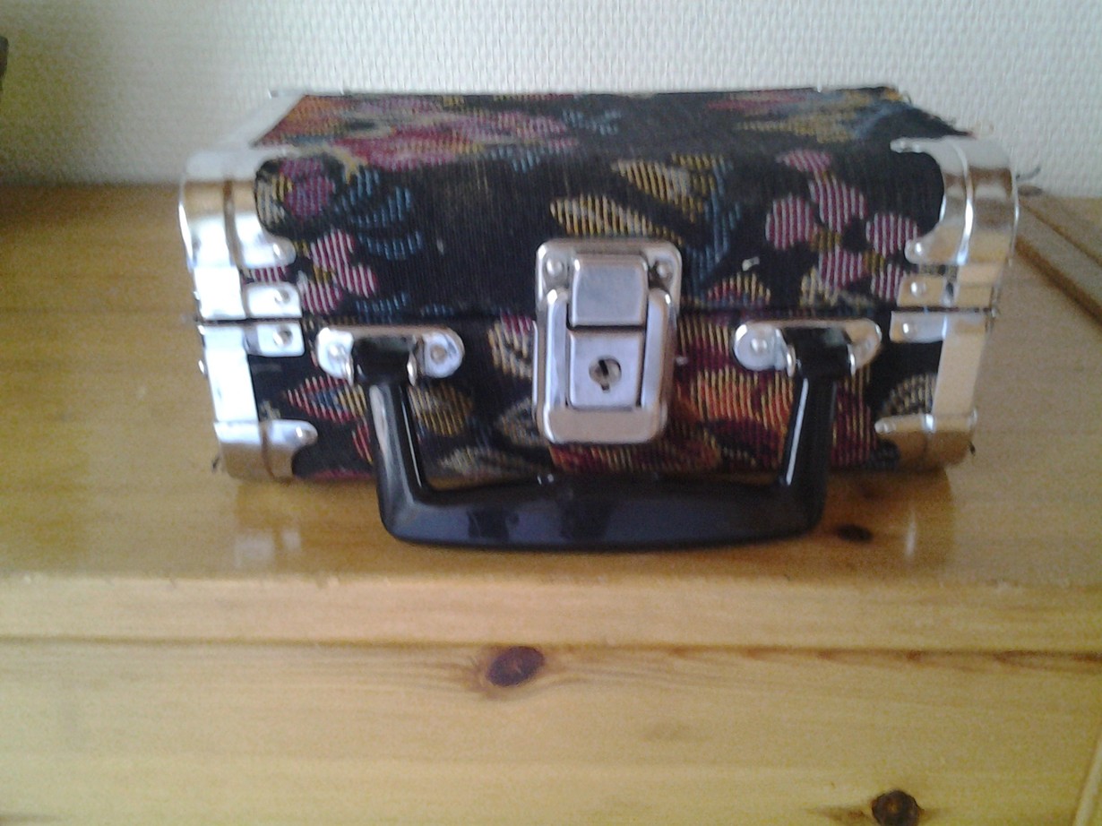 Tämä meikkilaukkuni on kulkenut mukanani vuosia.En muista mistä se on tullut, mutta aina kun reväytän matka-askin auki, se herättää hilpeyttä.
