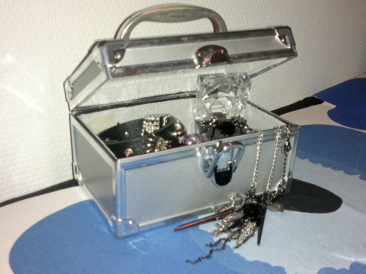 Kovakuoriseen meikki-/korupakkiin saan huoletta pakata aremmatkin korut ja tarvikkeet vaikka matkalle mukaan :)