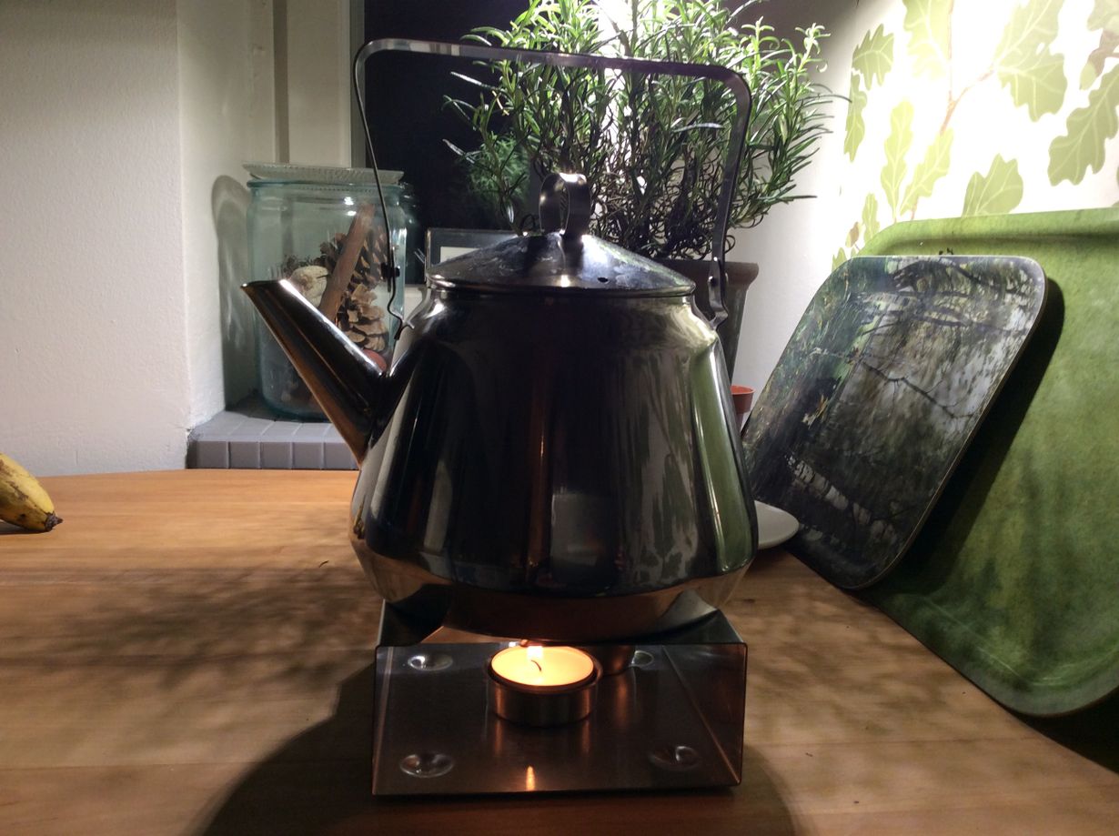 Sain ystävältä teepannun jossa tee pysyy lämpimänä ja tuikku luo tunnelmaa. Monet teet juotu ja maailmaa parannettu ’nuotiolla’ olkkarin pöydän ääressä.