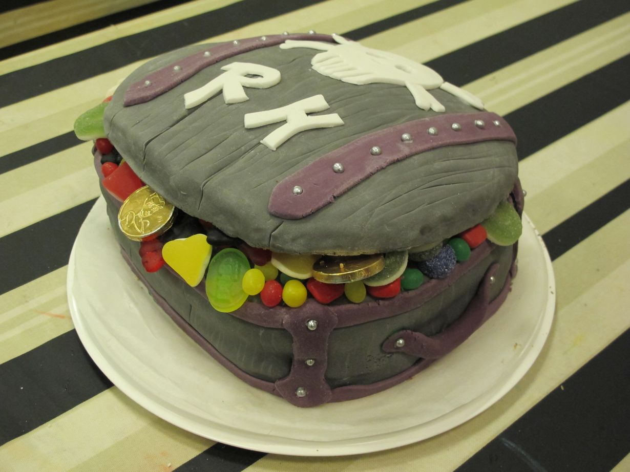 Pojat halusivat yhteisille synttäreilleen merirosvokakun. Arkun lankut ovat merivedessä harmaantuneet, koska kaupassa ei sattumalta ollut puunruskeaa sokerimassaa.