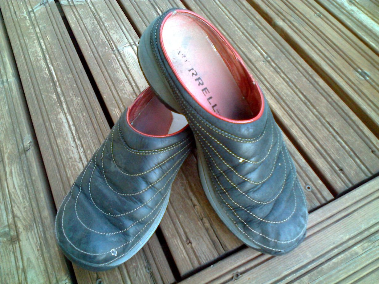 Kymmenen vuotta sitten ostetut ja ensin työkenkinä palvelleet ilmatyynyvaimennukselliset Merrelit ovat nähneet jo monta ulkokesää. Niillä jaksaa tarpoa helteellä kaupungilla ja niillä on helppo pistäytyä vaikka pihanperällä.