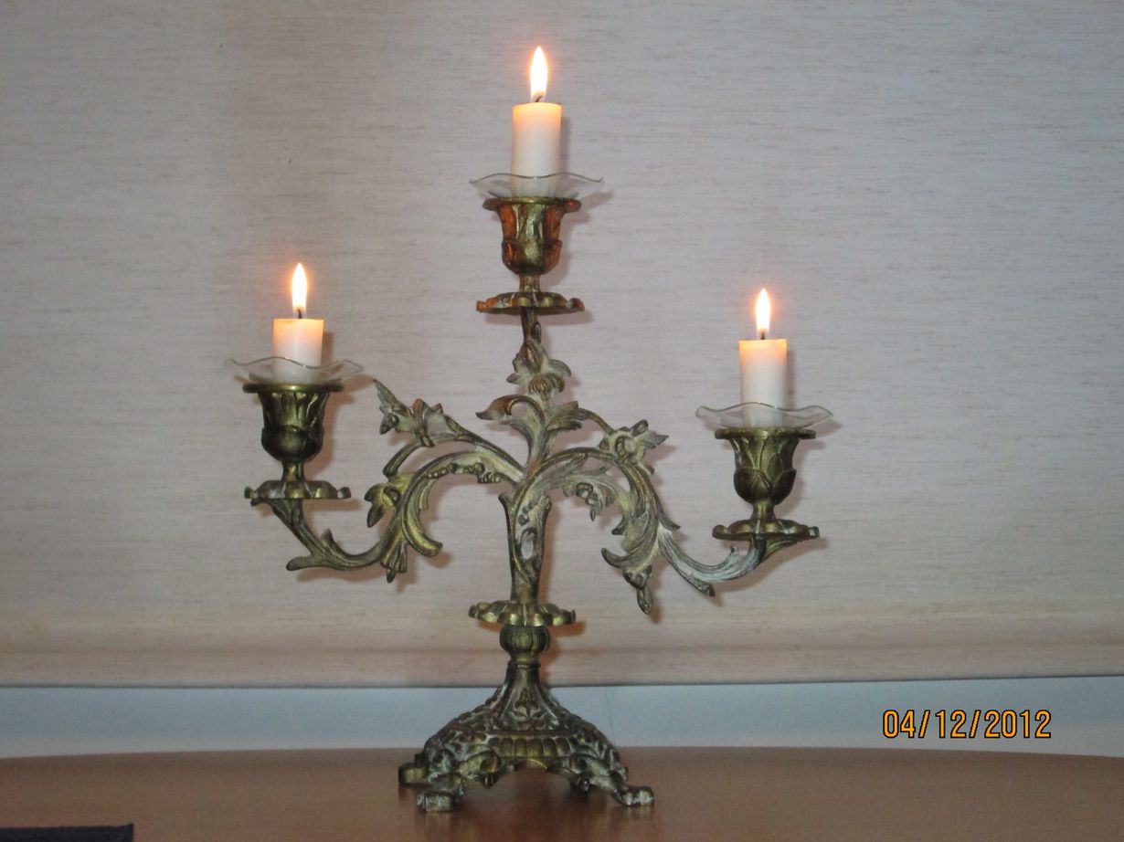 Kynttelikkö on tullut perheeseemme mieheni suvun kautta. Kynttelikön ikää emme tiedä, arvioimme1940-50 luvulta. Käytämme sitä joulun aikaan, muulloin se koristaa kirjahyllyä.