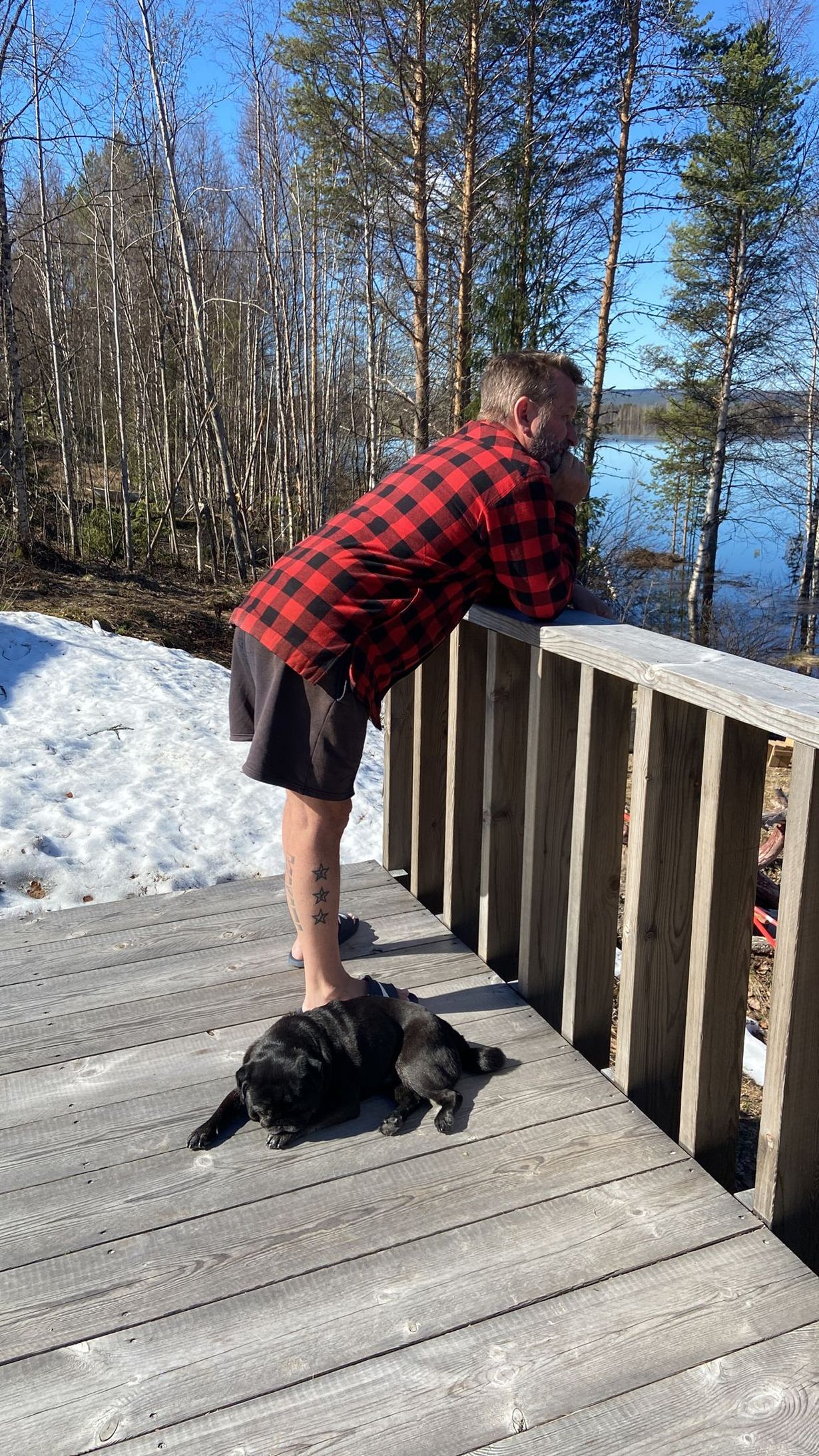 Tässäpä mieheni mökkivaatteet: Shortsit hänellä on aina, kohta puhki kulutettu, mutta kuulemma niin hyvät, takki on vuoden takainen hankinta.