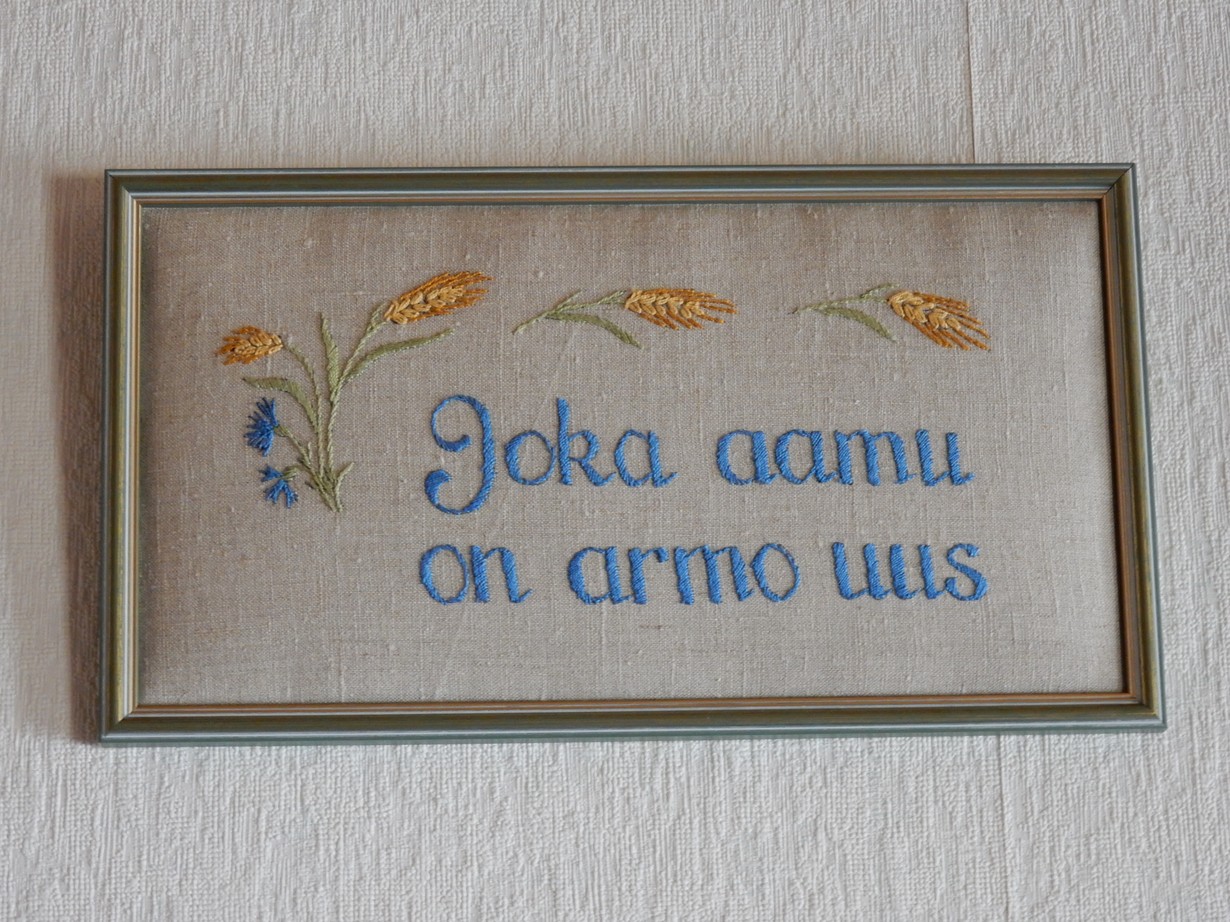 Juvalla oli huoneentaulunäyttely pari vuotta sitten.Oli uutta ja vanhaa ja uudistettua,kuten tämä.Ostin tämän itselleni tärkeän raamatunlauseen.