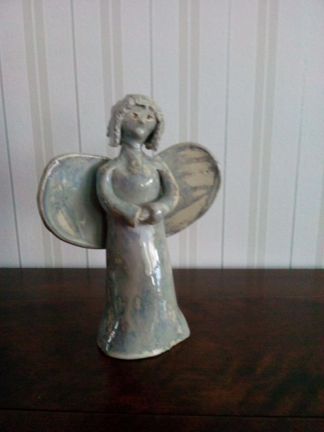 Monen yrityksen ja erehdyksen jälkeen syntyi ihan omin käsin savesta muotoiltu keramiikkaenkeli. Uutta lasitetta käyttäessäni jälki oli vailla vertaa. Lopputulos oli savolaisittain vitamulli. Ei läheskään täydellinen,mutta kuitenkin tärkeä onnistuminen itselleni. Nyt tuo vitamulli enkeli seistä napottaa kunniapaikalla joulusta juhannukseen ja juhannuksesta jouluun. Se antaa voimia tulevaan ja uskoa onnistumiseen.
