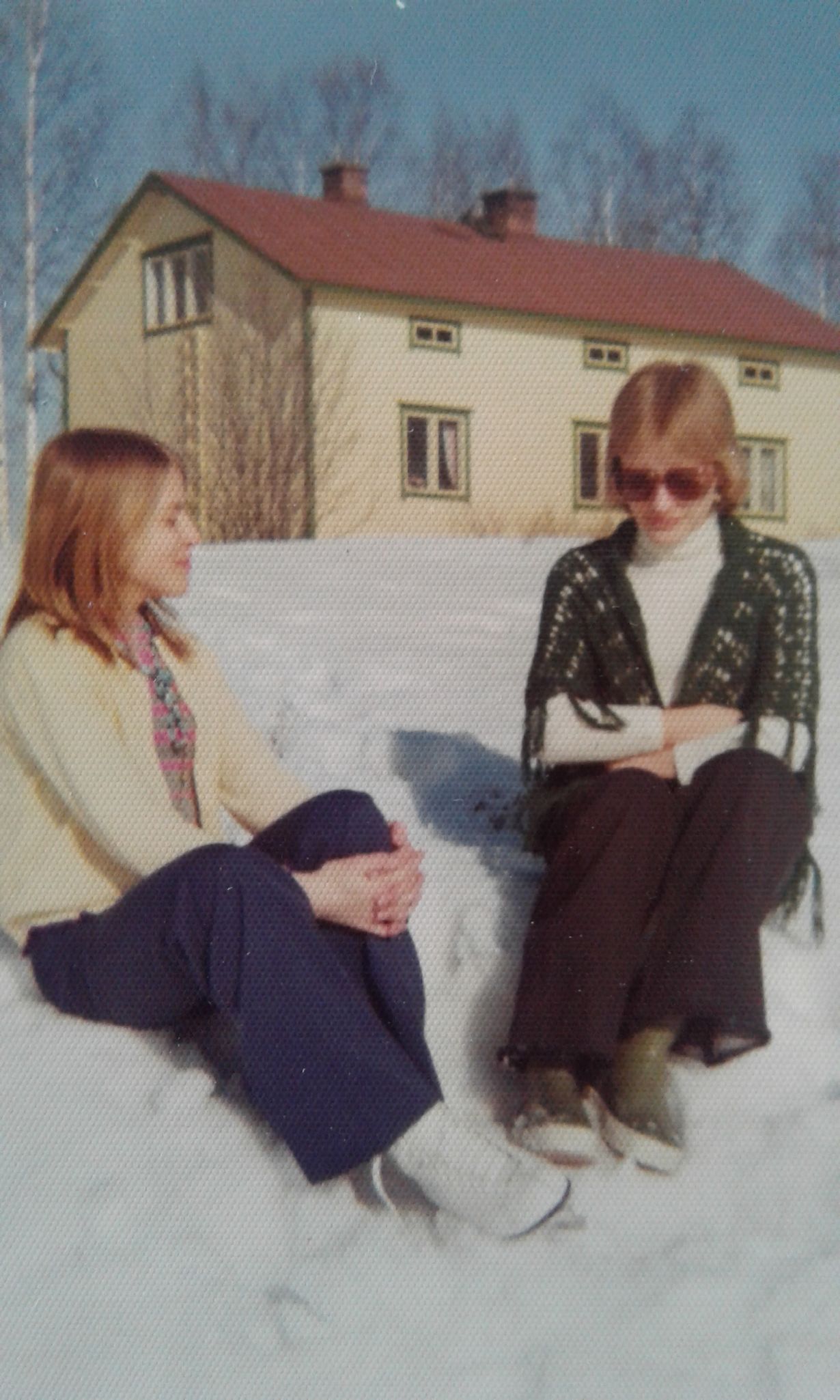 Minä ja sisareni elikkä tuttavallisesti Sipuli ja Sopuli Oulun läänin Miilurannalla 70-luvulla Kärsämäen joen rannassa talvella, kun oli vain yhdet luistimet niin piti vuorotella luistelua joen jäällä.