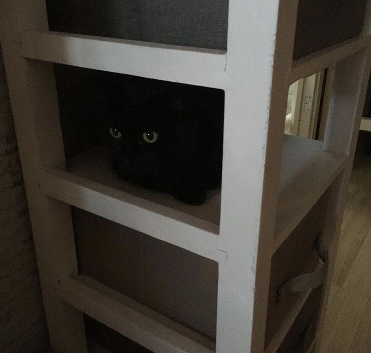 Etsin pipoa lipastosta ja otin laatikon lattialle ja Mimmi käytti tilaisuuden hyväksi ja löysi kivan paikan loikoilla.