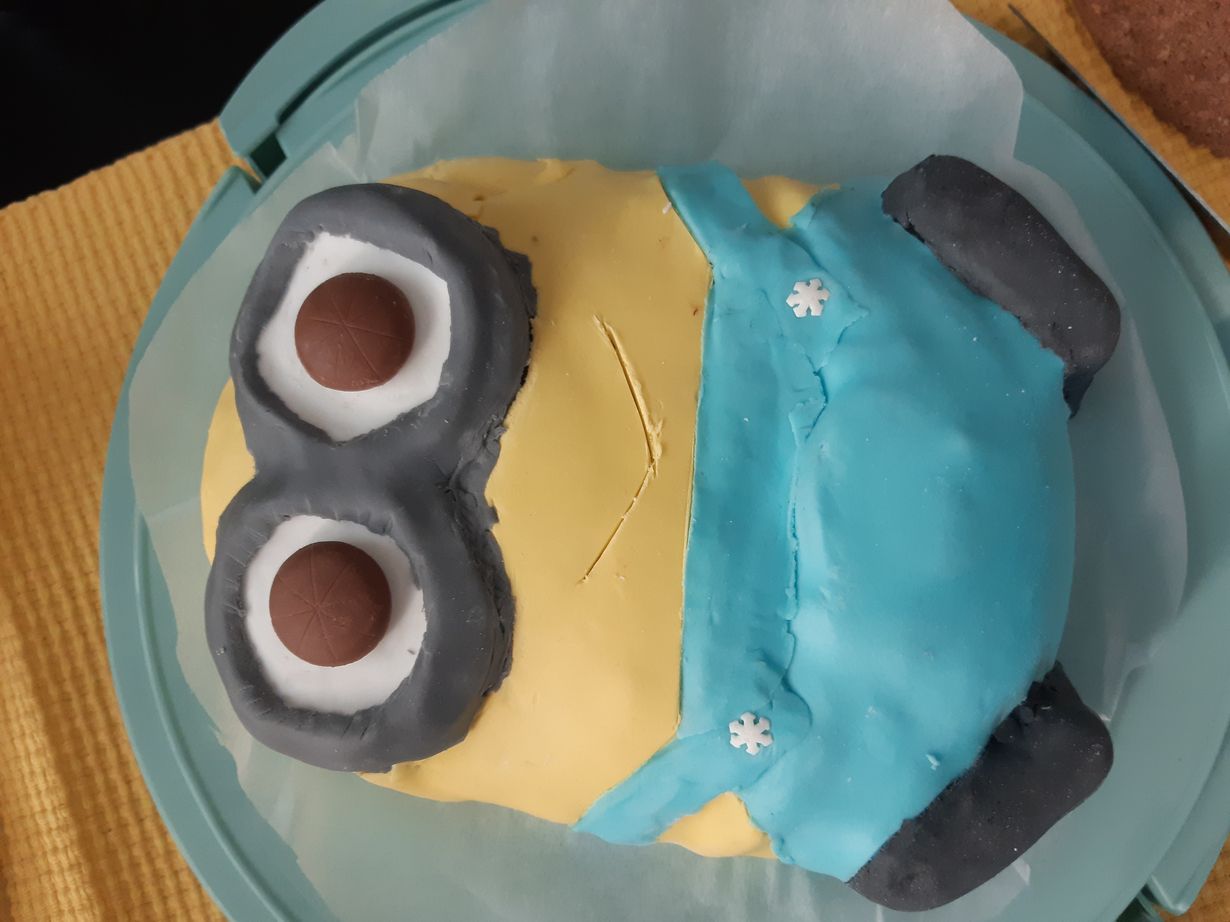 Tyttäreni avopuoliso leipo tänä keväänä 60-vuotissyntymäni kunniaksi Minion-kakun, koska tiesi minun pitävän Minioneista. Kakku oli hieno, enkä olisi malttanut millään leikata siitä palaa, mutta pakkohan se oli.