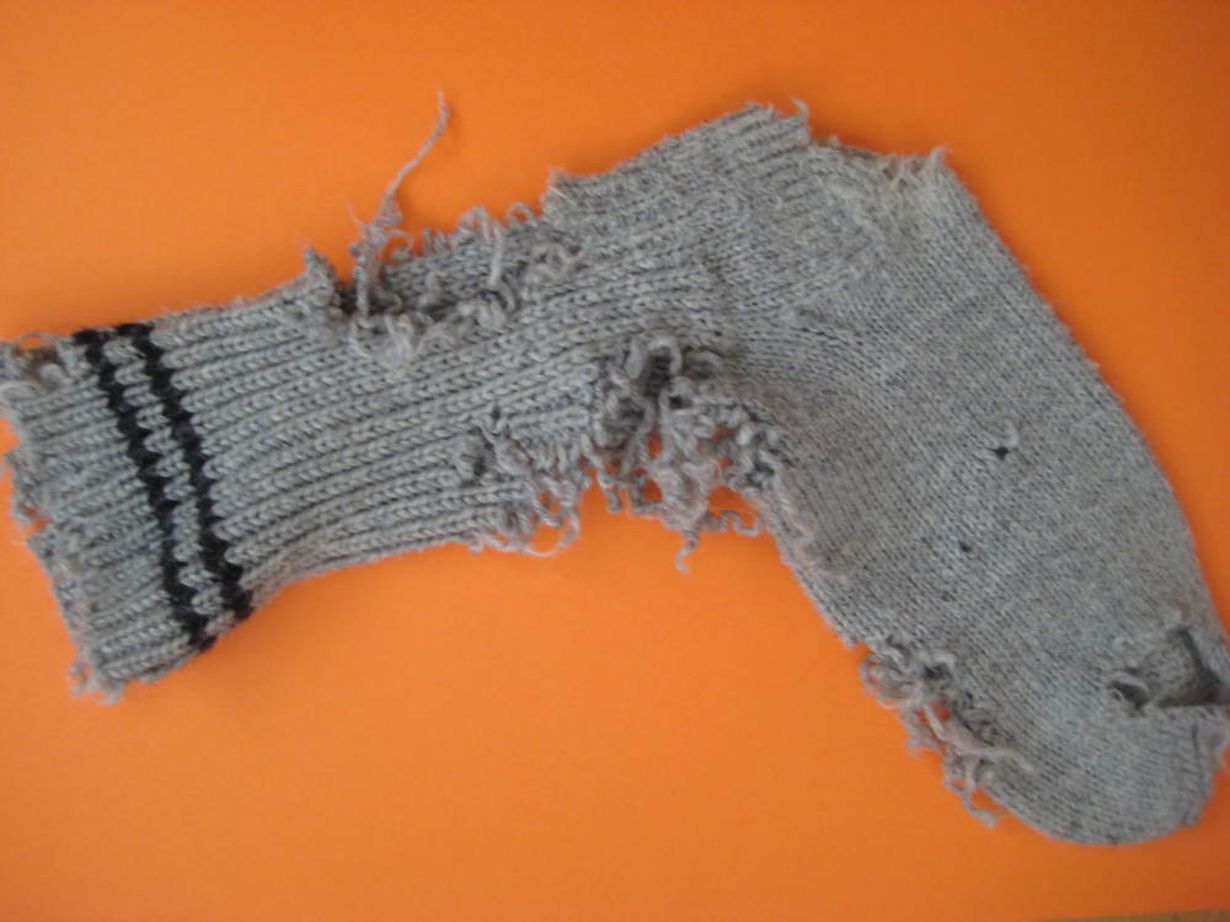 Tässä äitini kutoma "ennen niin ihana" villasukka, jota käytin usean vuoden ajan kylminä syys-ja talvi-iltoina. Perheemme kääpiövillakoira PULLA mieltyi jo pentuaikanaan samoihin sukkiin. Toinen sukista on saanut todella kovaa kyytiä ja onhan se edelleen käyttäjälleen ihana!