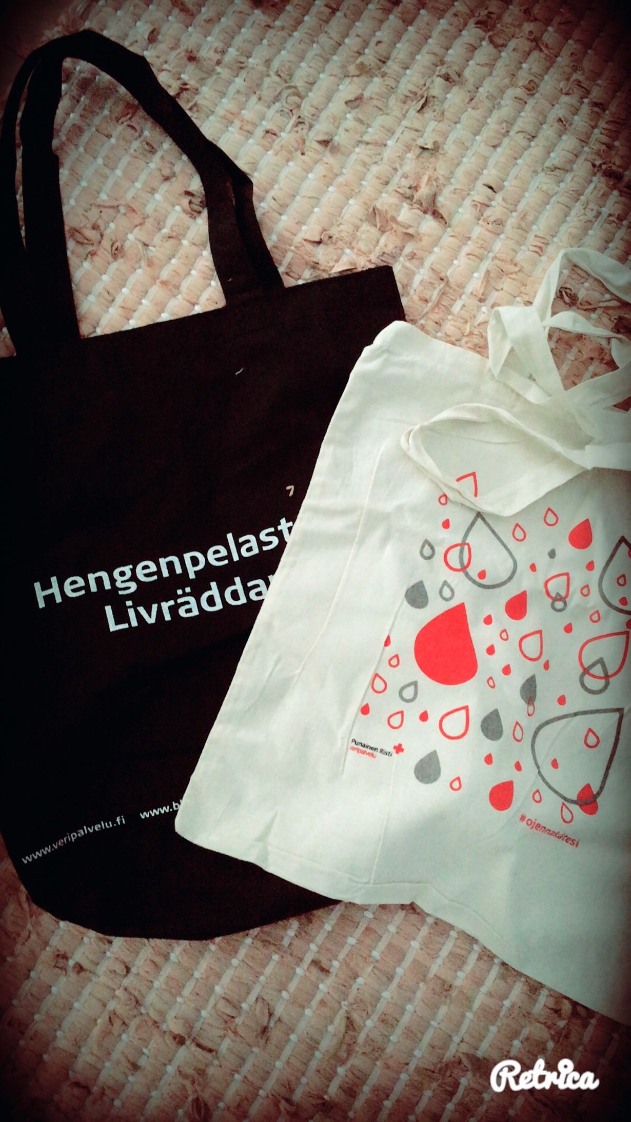 Sain nämä kangaskassit kiitoksena siitä, kun kävin luovuttamassa verta ensimmäistä kertaa. Näillä on kätevää ja ekologista kantaa kauppaostokset kotiin. Ihanaa olla hengenpelastaja ❤️