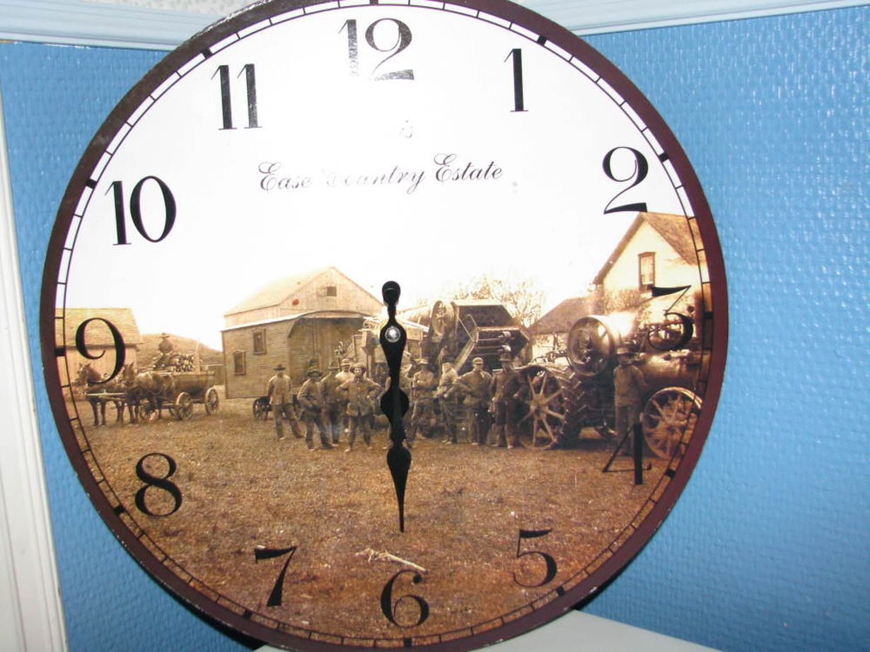 Isä osti tämän kellon eteiseen. Jostain syystä se ei toiminut. Äiti oli jo viemässä sitä roskakoriin, mutta sen kauniin taustakuvan vuoksi halusin ottaa sen talteen. Se ei käy, mutta koristaa huonettani lipaston päältä.