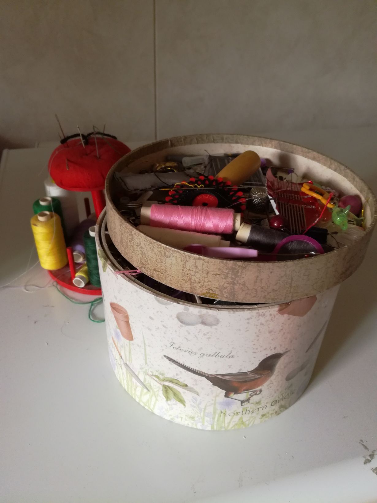 täältä löytyy kaikki mitä pitää,ostin tämän Tuurista poistokorista vitosella mahtuu lankarullat ym