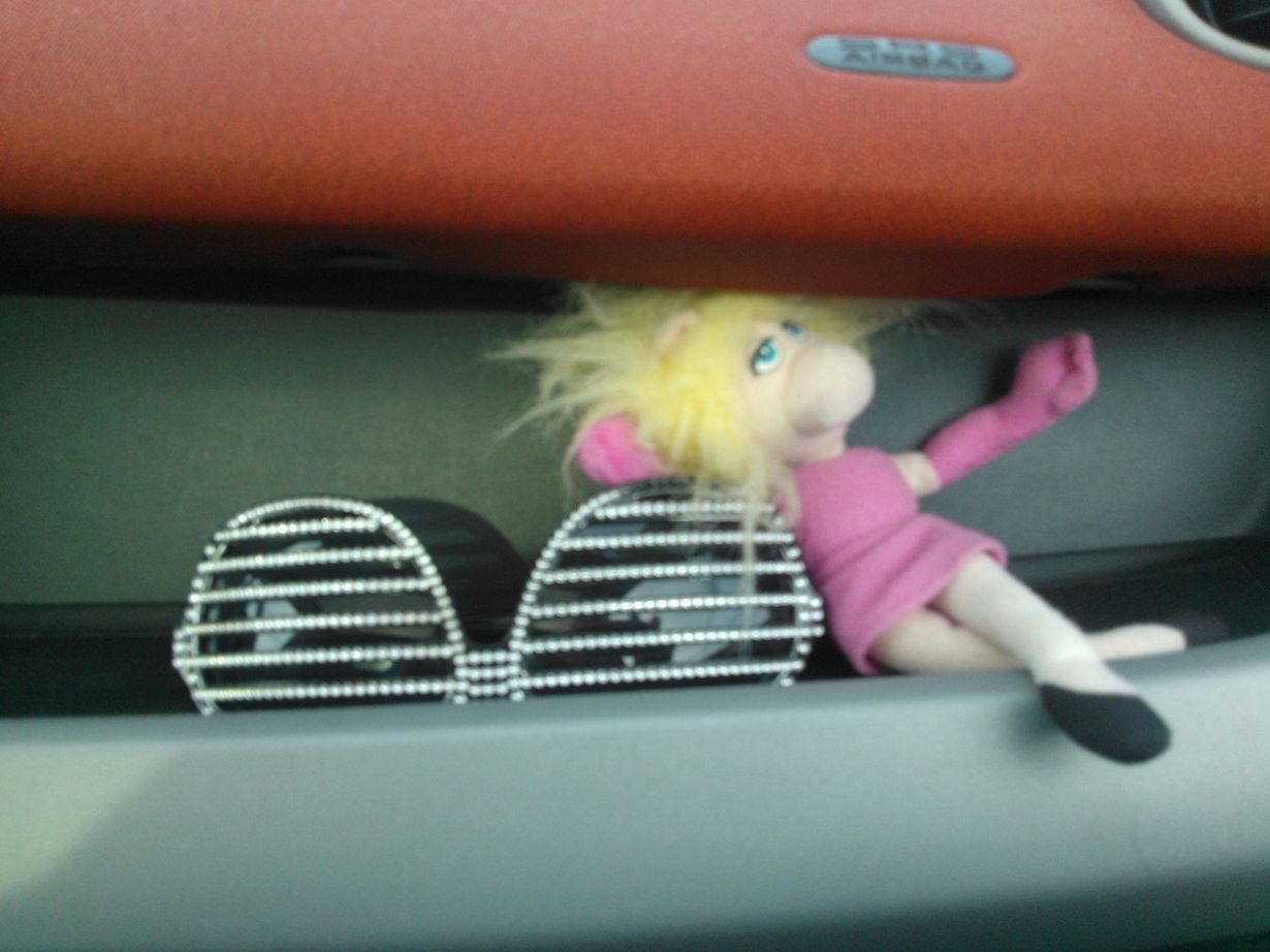 Tämä ihana arki: auton koriste Miss Biggy 3.3.2013 klo 14:31 Tämä hellyyttävä possu koristaa autoani, lisän häikäisevät aurinkolasit :) Tui Tui