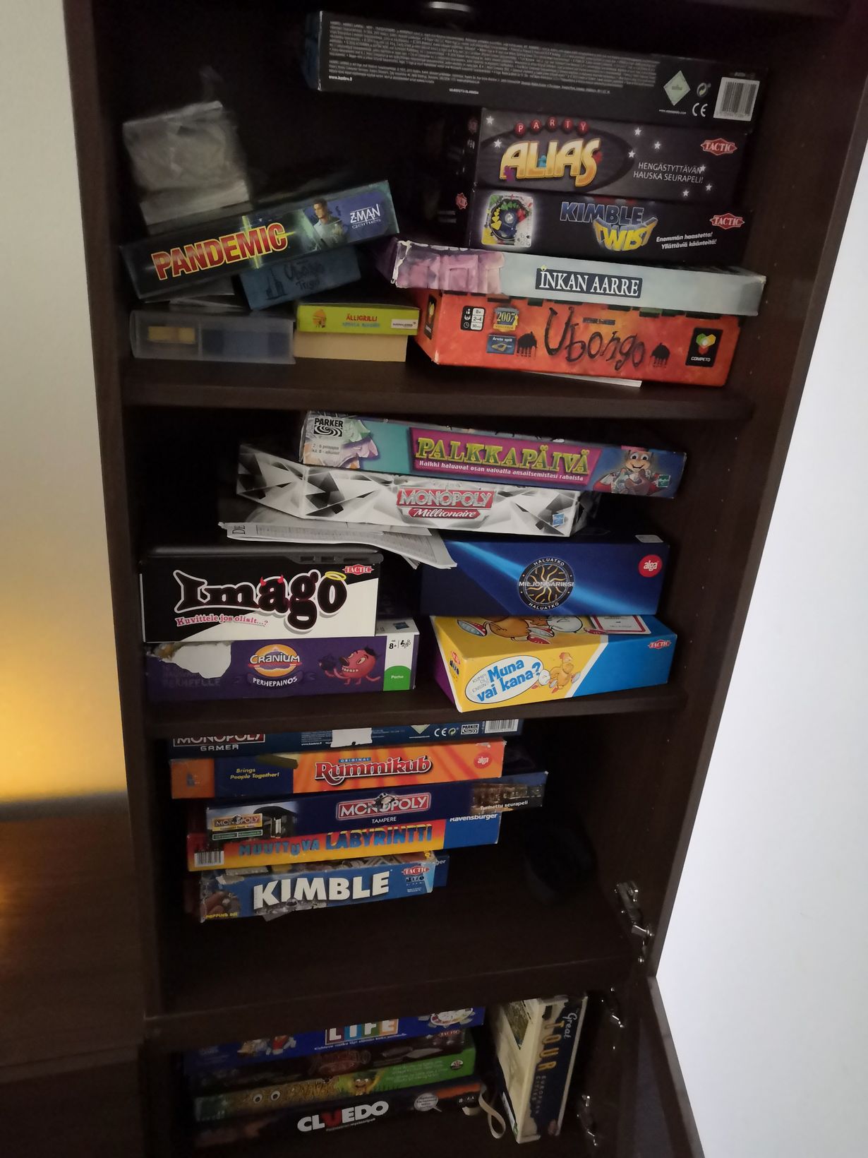 Meillä pelataan lautapelejä p a l j o n ja usein, niitä löytyy useita kymmeniä kaapeista. Lautapelit ovatkin yksi harvoista asioista, joihin teinitkin vielä innostuvat!
