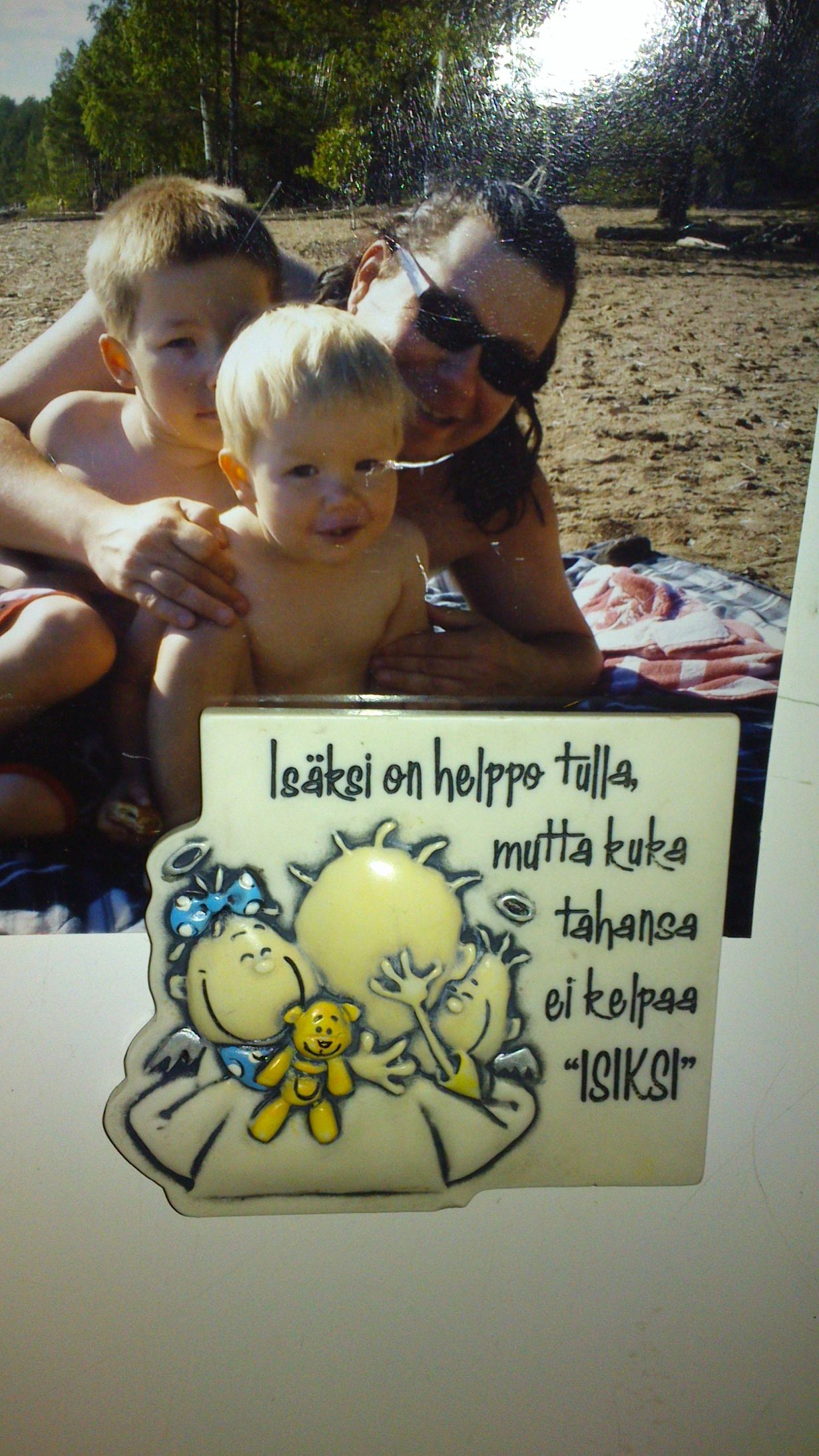 Tämä kuva on aina kiinni tällä magneetilla. Lämmin tunne tulee molemmista joka kerta kun niitä katsoo.Miu pojat x 3.