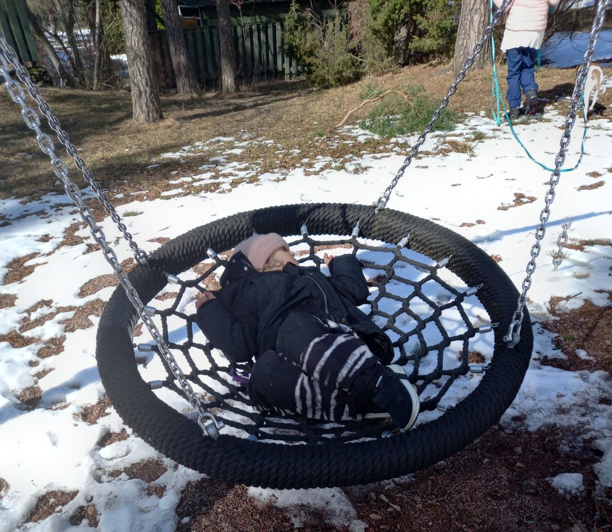 Pihakeinut taitavat olla vähissä. Tilalle on tullut uusia versioita, kuten tämä verkkokeinu johon mahtuu myös aikuinen kellimään viereen.