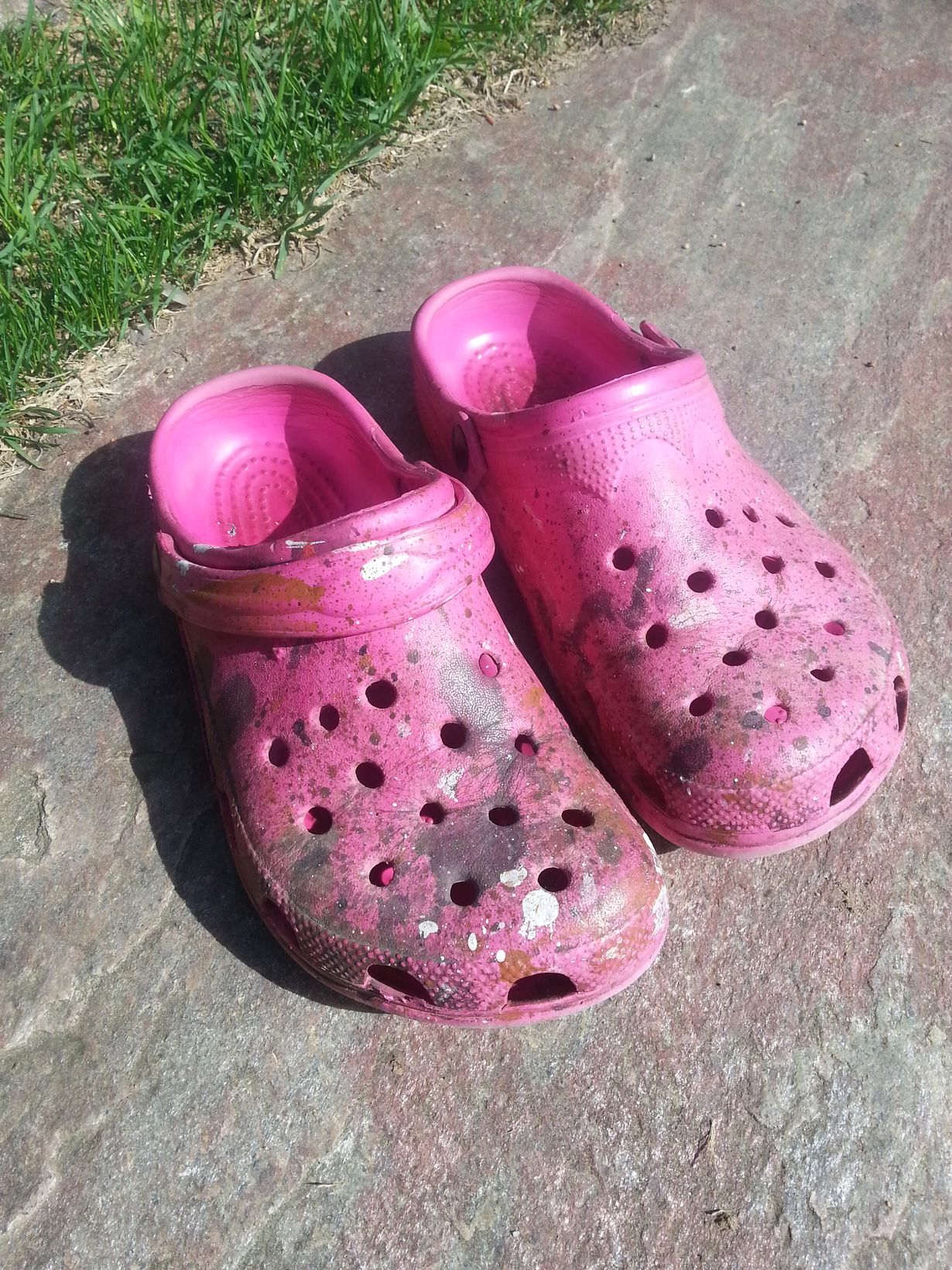 Nämä monessa mukana olleet "roksini" ovat rakkaimmat mökkikenkäni. Ne kertovat tarinaa mökillä puuhailusta ja eletystä elämästä. Ensimmäisen lapsenlapseni syntymän aikoihin v. 2010 rakensimme mökille uuden saunatuvan, jotta lapsen olisi hyvä yöpyä siellä. Poron harmaa Valtti color kengissä kertoo saunatuvan värin, valkoinen väri on saunatuvan puuosista ja ruskea terassiöly kaksi vuotta sitten rakennetusta uudesta terassista. Heti mökille saavuttuani lentävät kaupunkikengät nurkkaan ja vaihtuvat pörrösukkiin ja mukaviin roksiini. Ne jalassa teen puutarhahommat, käytän koiran lenkillä ja tallustelen muuten vain mökkitontillamme. Toivottavasti roksini palvelevat minua vielä useita vuosia. Tahtia ei haittaa, vaikka toinen remmikin on ajan saatossa katkennut.