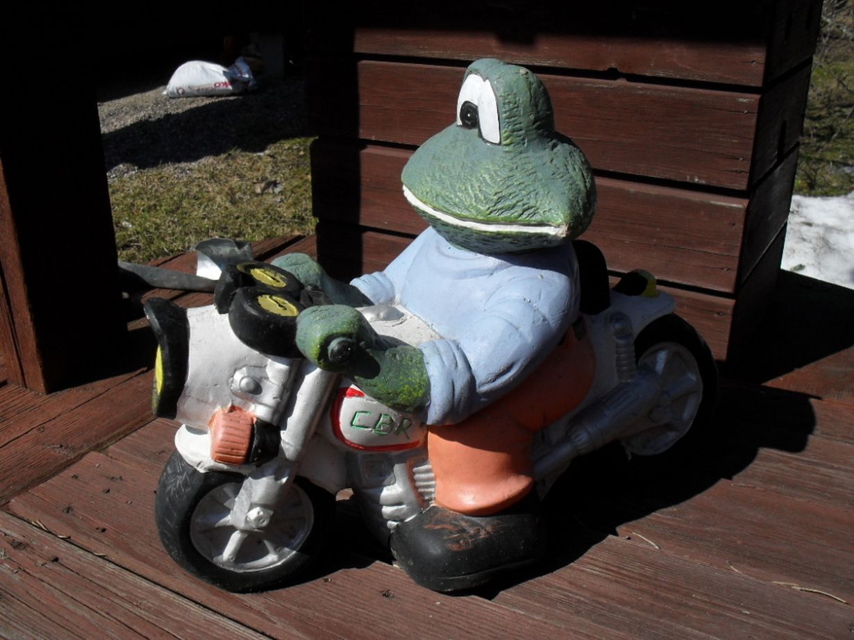 Vuonna 2004 minulla jälleen kauhea hinku ostaa moottoripyörä,joka jäi myös haaveeksi kun mieheni ja kolme lasta ostivat minulle äitien päiväksi sammakon joka tänä päivänäkin koristaa kotipihaa aina kesällä.